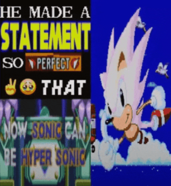 >>557221924Hyper Sonic itself is a game design bonus. Giving him any thought at all is "overthinking". I don't think it's a bad extrapolation