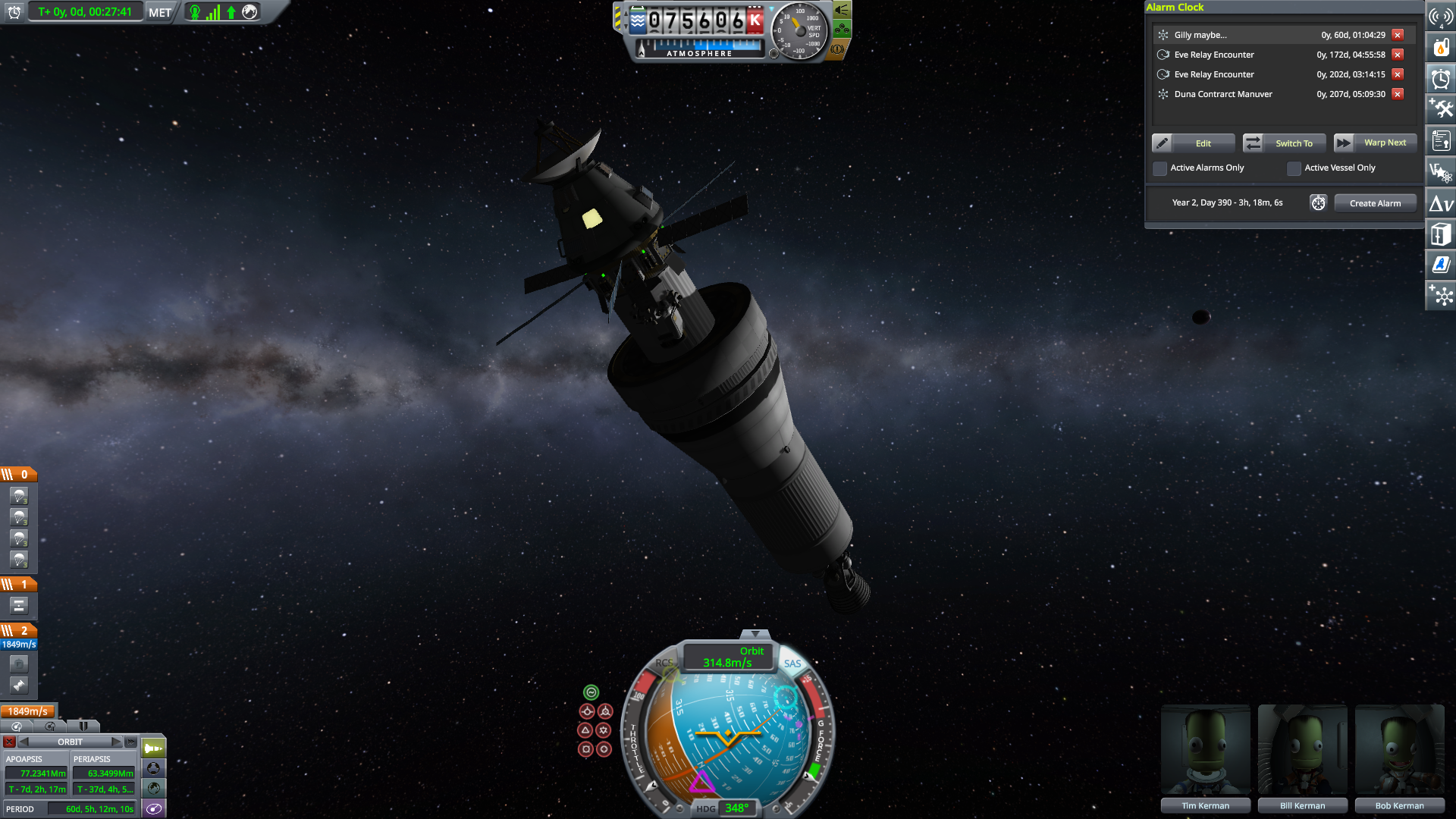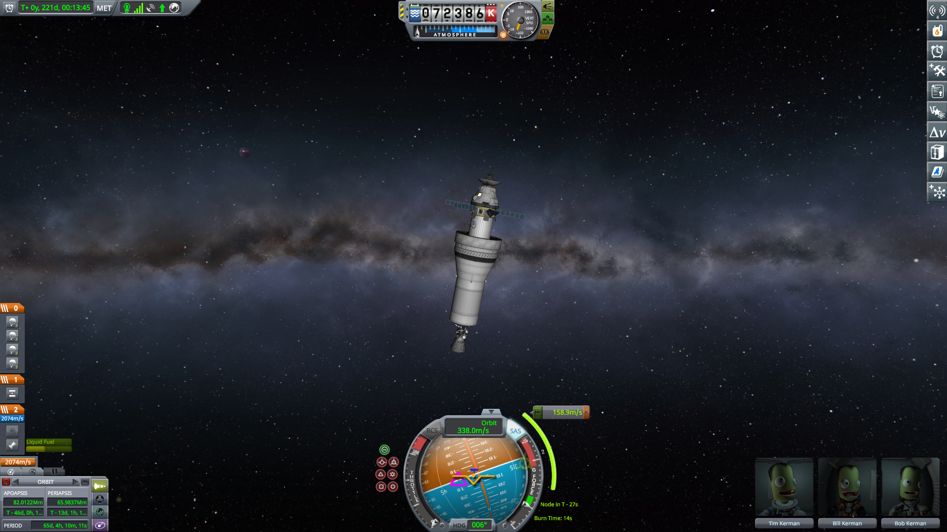 >>557769757Alright now I just need to send the back to Kerbin. SAS be with me. FUCK!!! The Probe broken maneuvers transferred to the main craft.