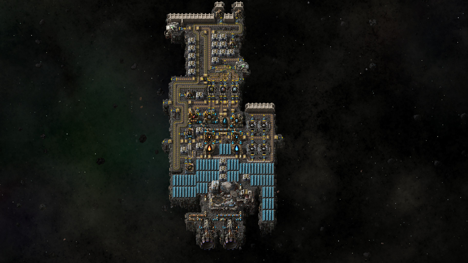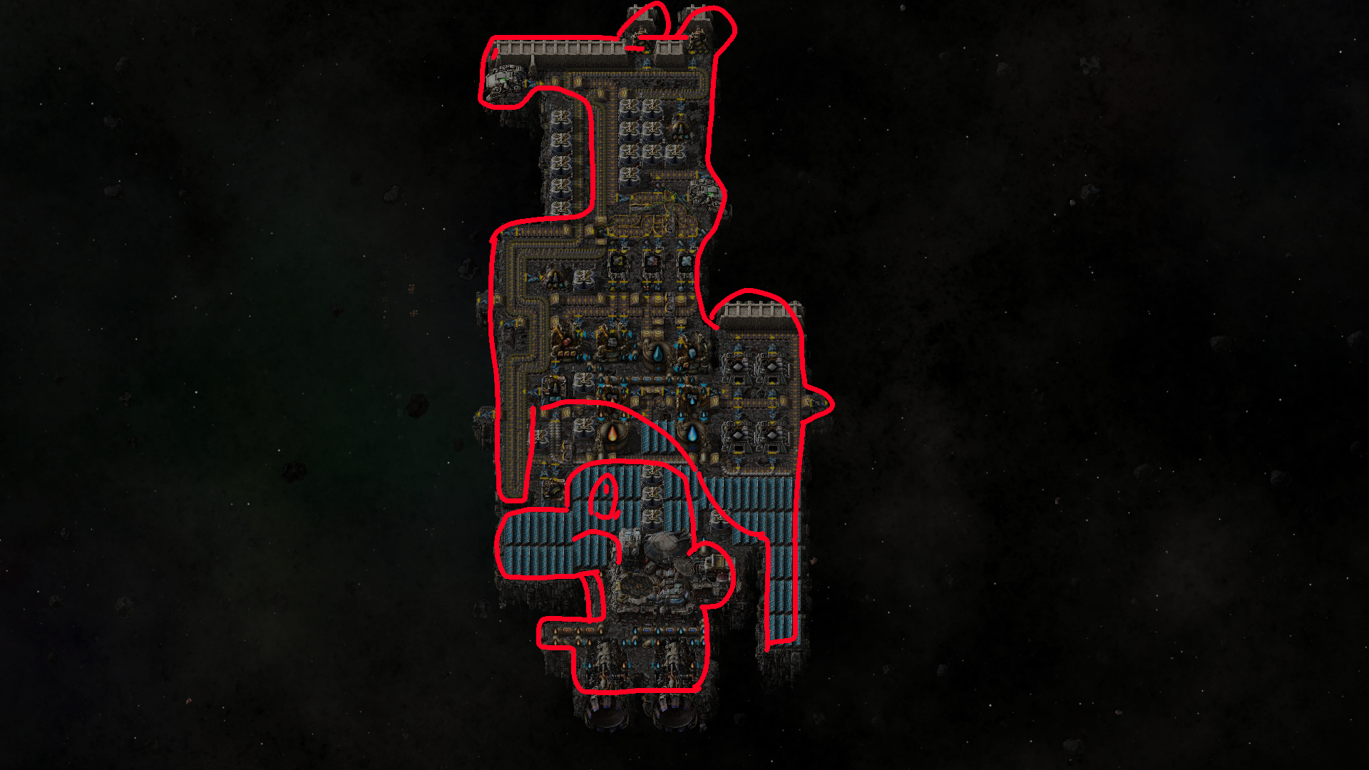 this may be the ugliest ship I've made so far, but it made it to aquilo unmanned on its first test flightnow it just needs an actual power source, which probably means I'll ship up some nuclear power and get kovarex enrichment going or somethingI'm not sure if steam will work in space though, but idk any other power sources off the top of my headsolar seems to be shit that far away from the sun>>557769338it's for safety, not the main means of defense