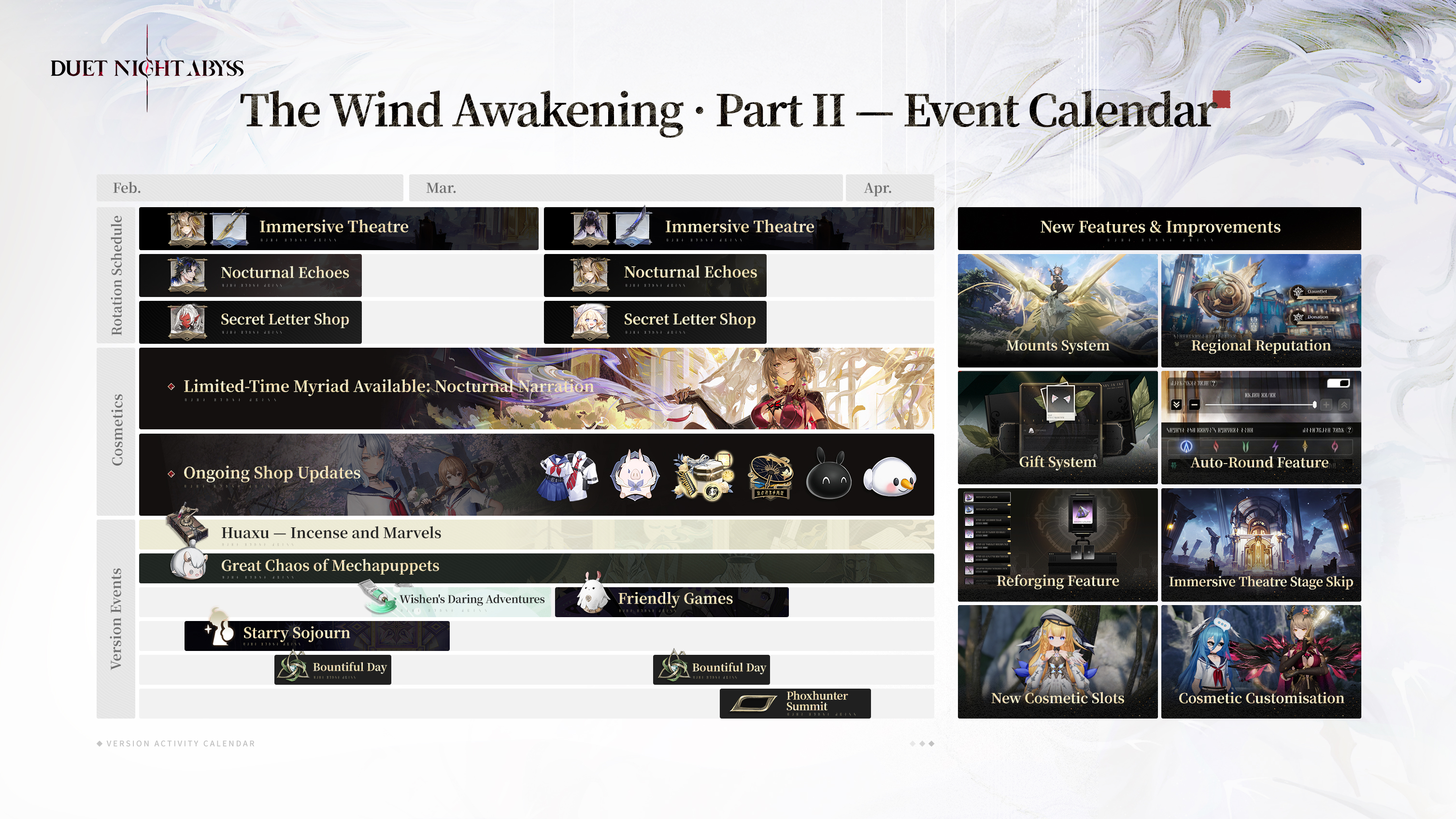 >Schedule for 1.2 Events, Theater/Letter Rotation, and Geniemon Reset