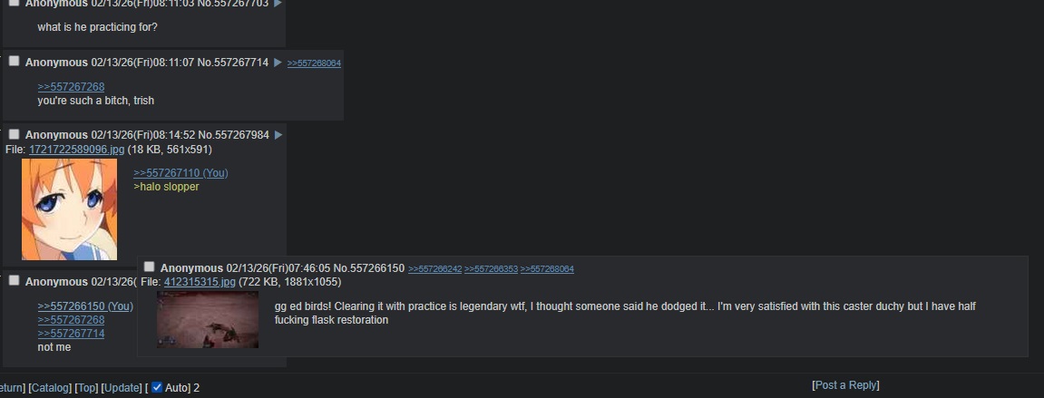 >>557297616I admire your zen like a pilgrim respects the monk