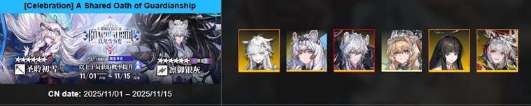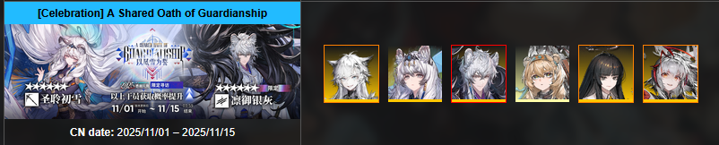 Previous thread: >>557159007>CURRENT, FUTURE GLOBAL/JP/KR CONTENT:[1/30-2/13][Standard]6* Vanguard Vulpisfoglia, 6* Caster Goldenglow (Shop), 5* Caster Tecno, 5* Vanguard Surfer, 5* Defender Firewhistle (Shop)[1/16-2/13][Marthe, Coral Coast & Misaligned Sightseer]Thorns the Lodestar, Ch'en the Holungday, Necrass, May, Pepepipi[2/3-2/17]Duel Channel: Honeydew[2/3]Holographic Combat Matrix[2/10-2/24]AK x BanG Dream! Ave Mujica: Somniloquium Serenum - 5* Guard Nyamu Yuutenji & 5* Specialist Umiri Yahata[2/10-2/24][Cantilena Puppae]6* Guard Sakiko Togawa, 5* Supporter Uika Misumi, 5* Specialist Mutsumi Wakaba[2/10-3/3][Crossover]Sakiko Togawa, Uika Misumi, Mutsumi Wakaba, Nyamu Yuutenji, Umiri Yahata>CURRENT, FUTURE CN CONTENT:[1/29-2/12][Standard]6* Caster Blaze the Igniting Spark, 6* Vanguard Ines (Shop), 5* Medic Paprika, 5* Medic Nowell, 5* Specialist Spuria (Shop)[2/3-3/3]Reselling a bunch of skins[2/10-3/3]First of A Thousand Autumns - 5* Sniper Ju[2/10-2/24][Ashes to Ashes, Ages on Ages]6* Specialist Wang, 6* Guard Ch'en the Dawnstreak, 5* Medic Taraxacum[2/10-3/10][0011]Dusk, Ling, Yu, Philae, Surfer[2/14-2/28][Unveiling of Devotion]Breeze, Beanstalk[2/14-2/28][Unveiling of Devotion Re-Edition]Nightmare, Hibiscus the Purifier; Harmonie, Arene>/akg/ website:akgcc.github.io>AK EN Database:puppiizsunniiz.github.io/AN-EN-Tags/akhrchars.html>More valuable resources:rentry.org/akg_resources>/akg/ merch guiderentry.co/akg_merch