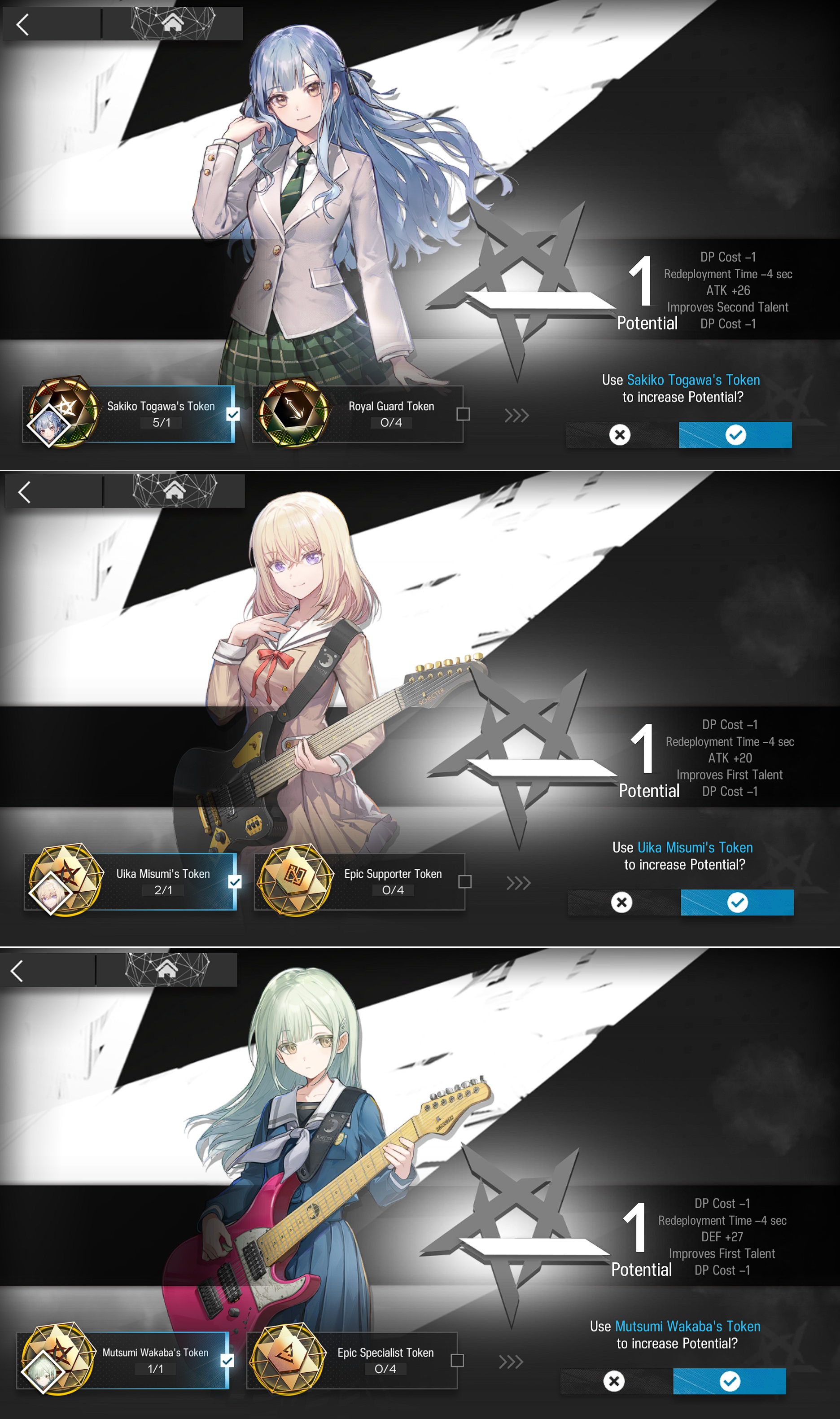 I keep telling myself "there's no point in raising Uika, she's not even that good" but then I think about how Sakiko's attack range could be even bigger and the struggle begins anew