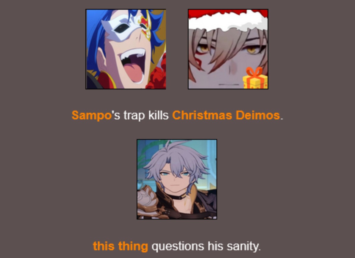 >>557217120Funny hearing that here, where most characters has barely any screentime or any interlude equivalent.In FGO most characters have at least either of those.Keep coping and shilling HSR for free though.