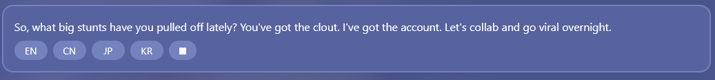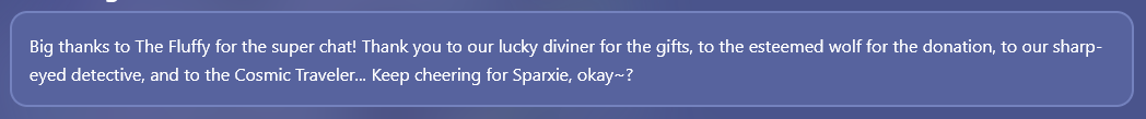 https://sr.yatta.moe/en/archive/avatar/1501/sparxie?mode=voice>Gray Hair, you know I'm totally your top fan, right? So... which show are we acting in together next?Trailblazer is so lucky...