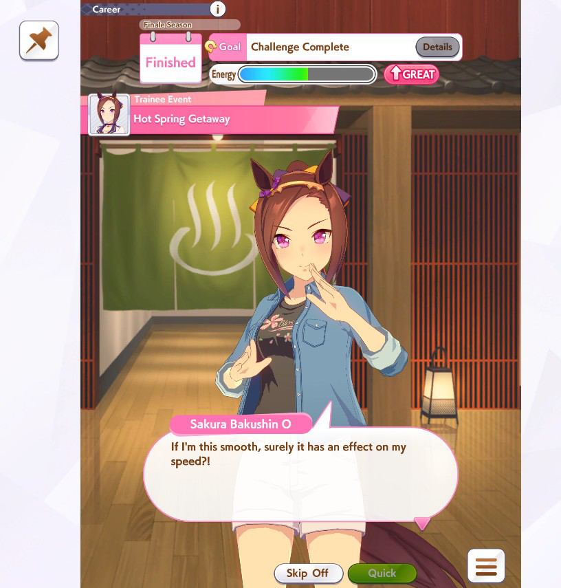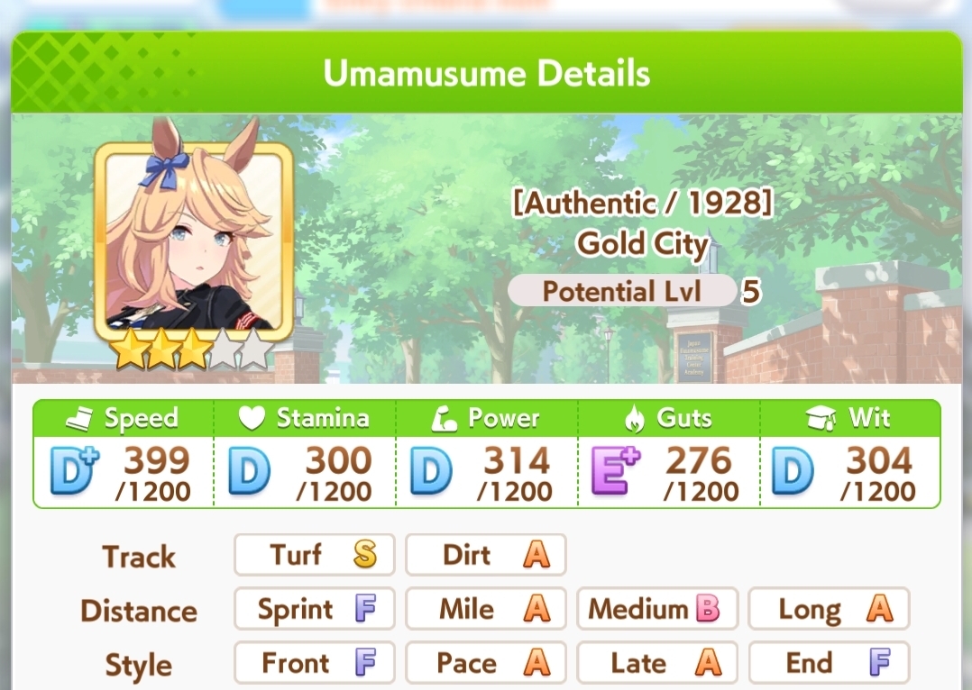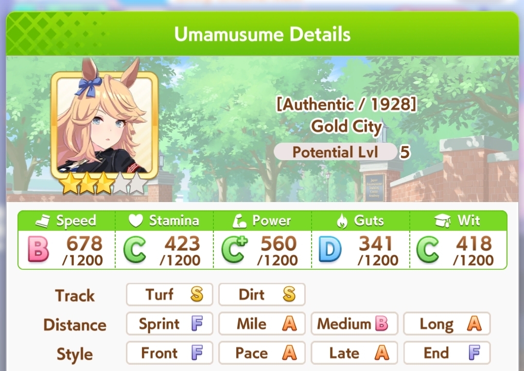 >>557208597I absolutely hate doing Narita Taishin's with the one event that gives you a mood down all the way, I have not had a good career with Eishin or Amazon whatsoever. I love Gold City but having to run Tenno Spring and mediums all career is annoying for a miler.