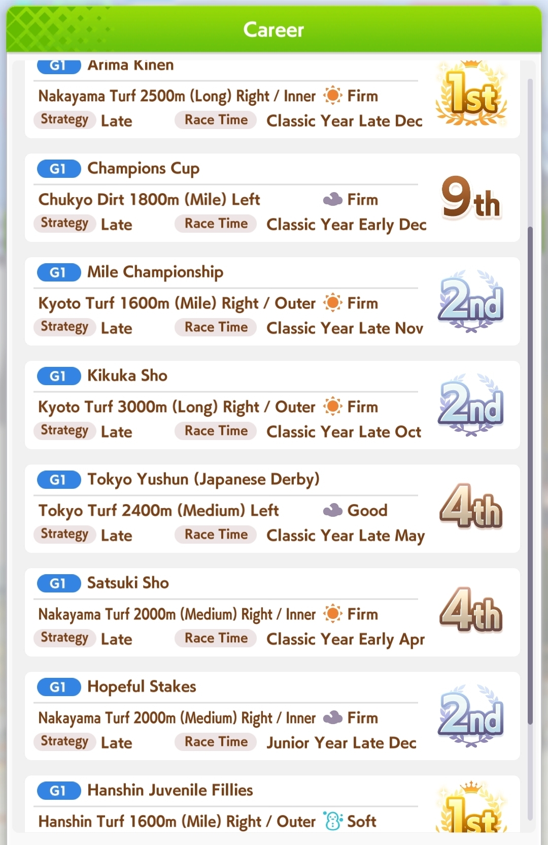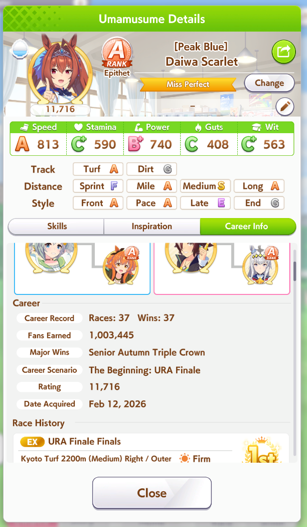 I only have 2 dirt umas, pasa and haru. No Maru, no Oguri, no Taiki