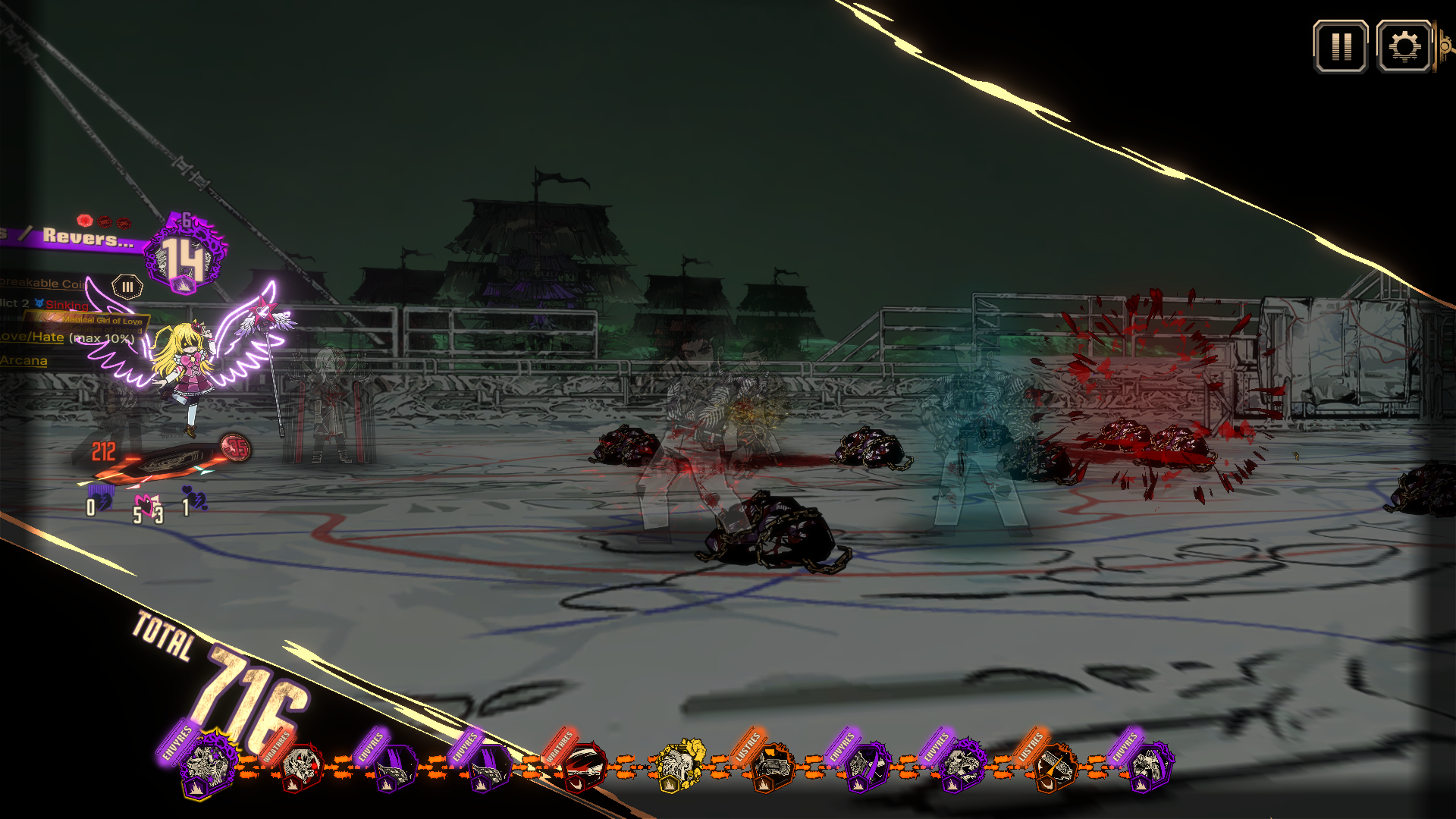 Do you think this team can make it through Canto 9 or should I wait until I have some real IDs and some more levels? I can't even reliably clash against the zombies, let alone Lucio. But I don't want to spend my scarce XP tickets on base IDs. I just saw the "pay lunacy to continue" screen for the first time, is that something new they added for this canto? And speaking of Lucio, where's the ammo gimmick for his swords? They just look like weird segmented swords to me, I thought the Thumb was supposed to be all about gun(blade)s and bullets