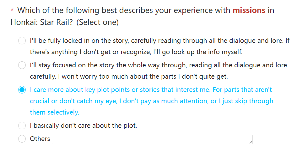 Sometimes they need legitimate prove are you answer is truth or troll. If you answer this question with first option yet your data record you always skip, you will get flagged as troll and your survey will be flagged as outlier/anomaly.
