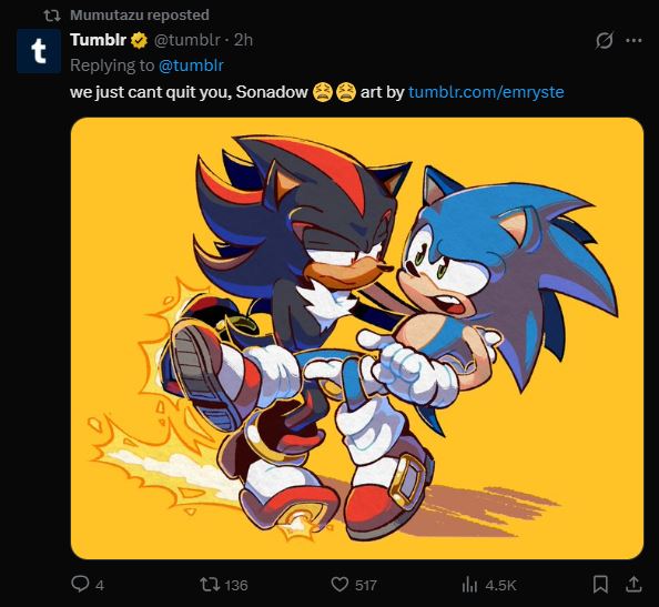 >>557233820Sonic is a power fantasy for speedShadow is a power fantasy for tentacle sex