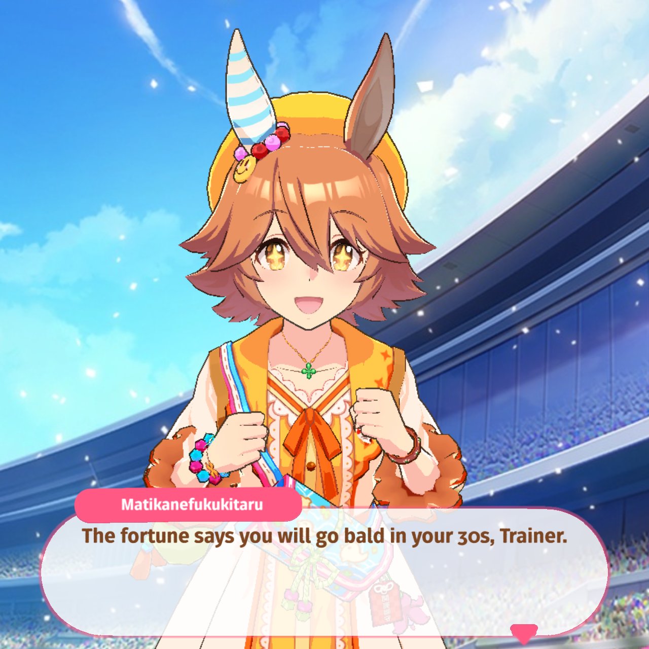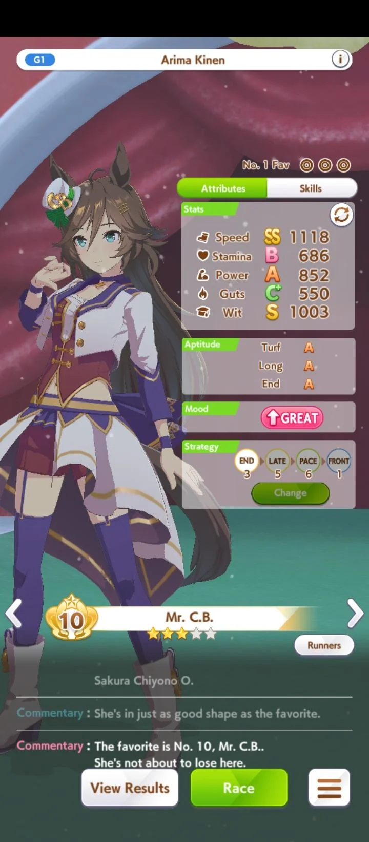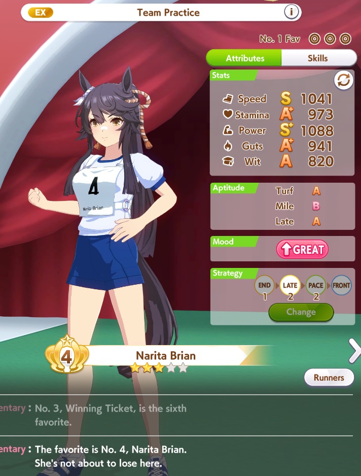 >Fucking around in Urara's Career mode trying to fish for the crane game>Eh, these end-of-career stats aren't fantastic, nothing higher than a C+>Leave the URA Finale running while making a sandwich>Come back to see Urara doing a victory concertFucking how? Any time I try to play "seriously" with Rudolf, Opera, Doto, etc., they get smoked in the semifinals.