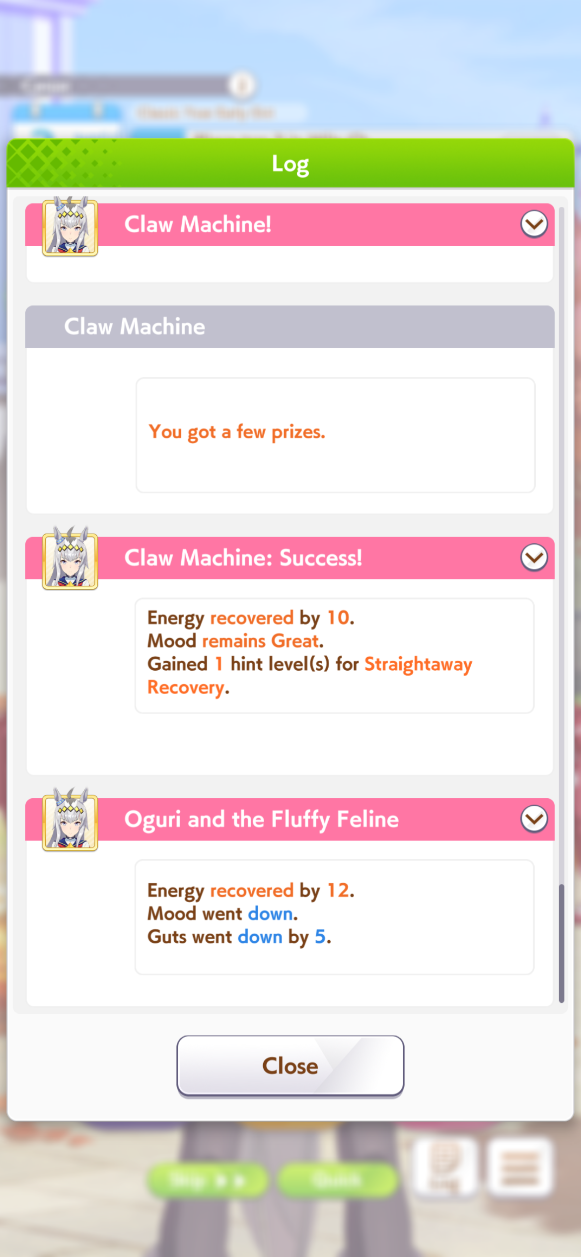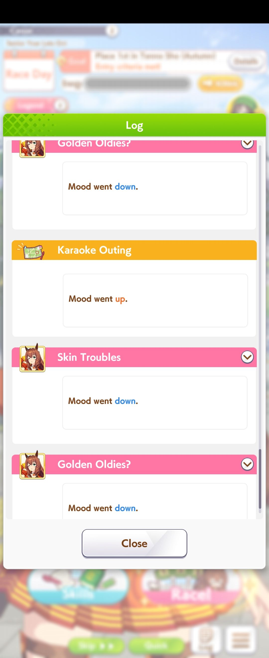 Oguri just fucking refuses to stay in great mood, I’m just past first summer and I’ve had six mood down events already WHY IS SHE LIKE THIS?
