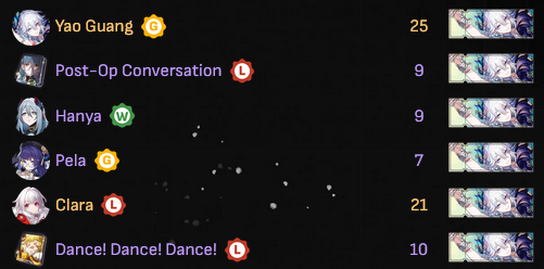 I managed to get Hysilens in 50 pulls. I still have a bunch of unfinished Amphoreus stuff and exploration to do, not to mention the new stuff. I hope I can get Swan too...