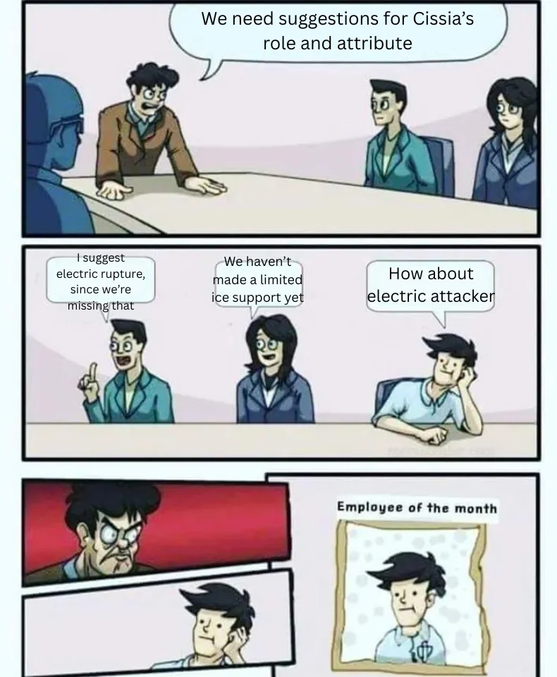 if she were rupture she'd have a use for banyue/yixuan/yidhari skippers and we'd have our electric rupture filled with lucia getting another partnerelectric attack actually kills her for anybody who doesn't REALLY like her animations model or personality.