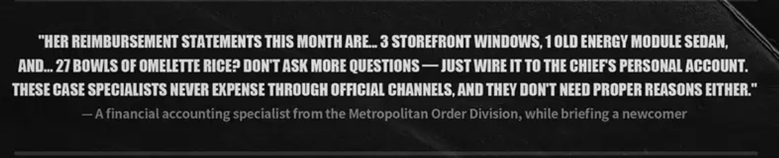 >>557243605>Order is inherent. The law tempers all.>Metropolitan Order Divisioninteresting. any lore nerds can confirm if that's new or was it like that too for previous NEPS agents' drip post too?