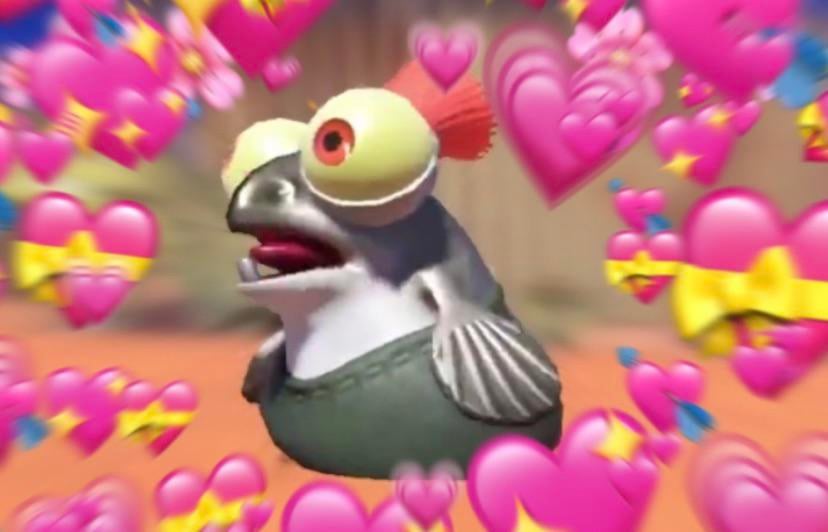 Woomy with large floppers and an equally large smile
