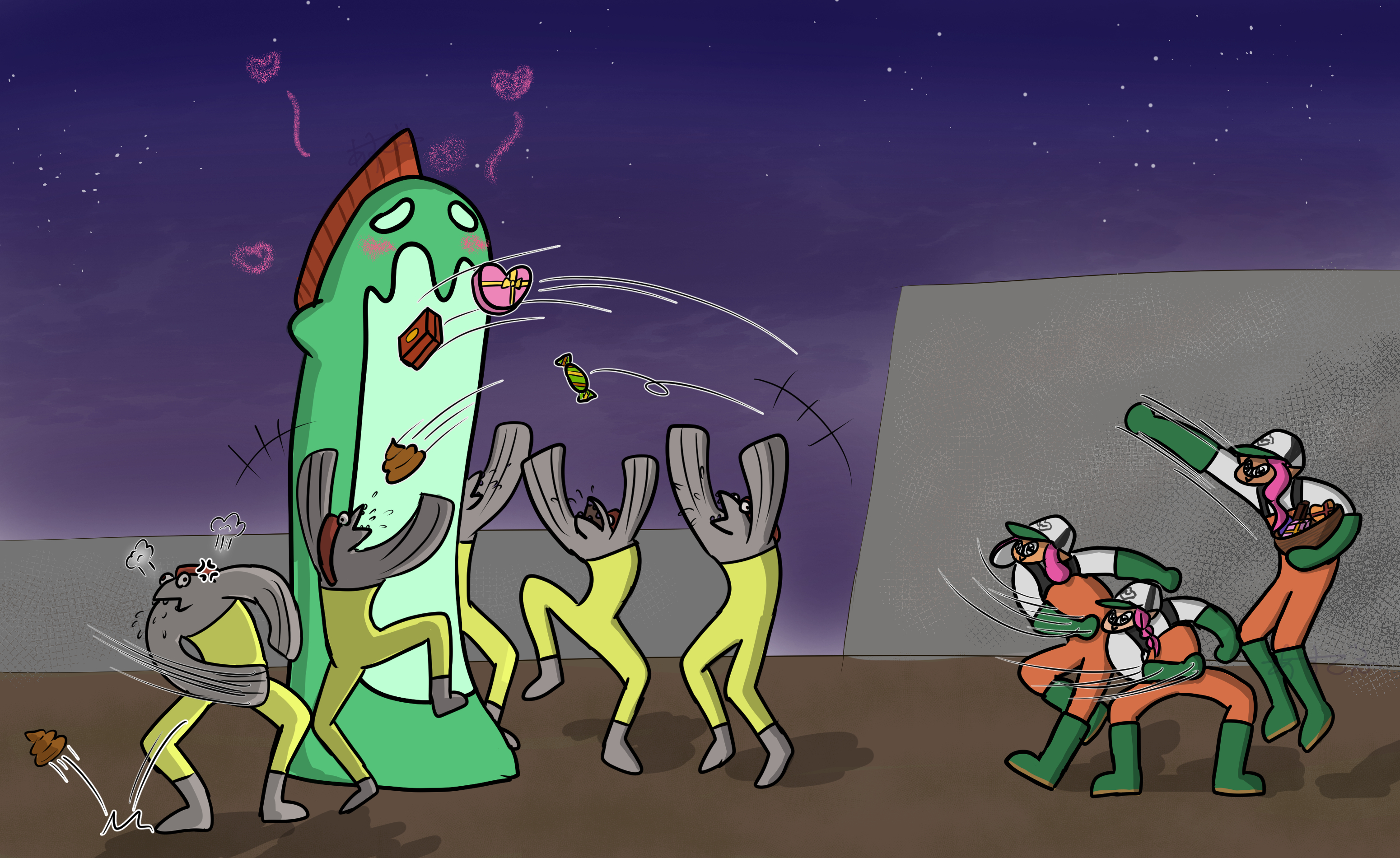 I had a dumb idea that after the events of splatoon 3 grizzco has to continue. So squid sisters decide to start researching the ruins in alterna more and need a steady supply of power eggs to keep the lights on. The obvious move is to take over grizzco and keep it running. Rebranding the whole company is going to be impossible so they keep the fuzzy bear aesthetic. All this is just an elaborate set up to have callie or marie wear a teddy bear costume.