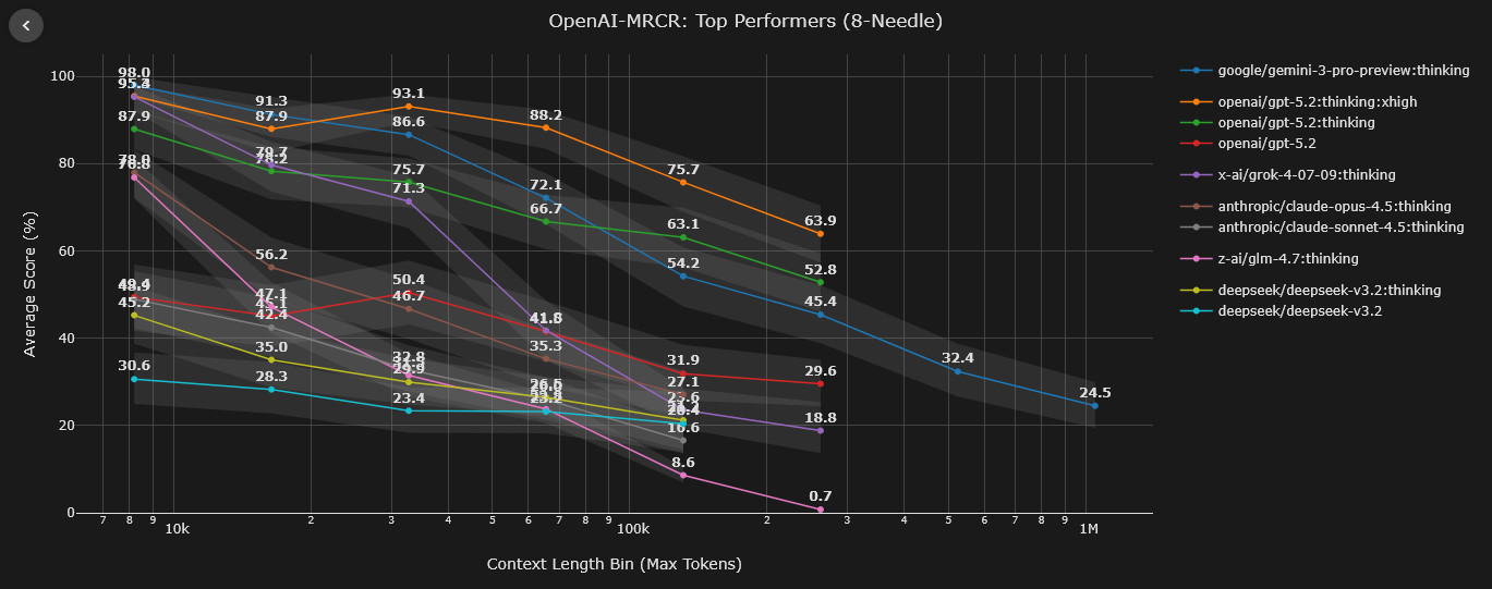 >>557269354There's still a fair number of them out there, although I don't know if I've seen a comparison - look for MRCRv2 and it's variants (the classic "needle in a haystack" test).Looks like this site (https://contextarena.ai/) has compiled them, and honestly it's kind of weird how some models seem to struggle even at 8k context when faced with 8-needle problems?