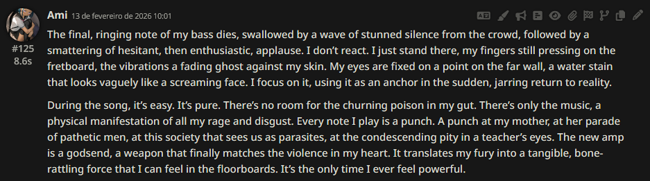 >>557284869>Also, trying to ban it from using — seems to lobotomize it for some reason.you were absolutely right anon, wtf? trying to dissuade it from using any double em dashes at all really does seem to lobotomize 'n kinda downgrade its writing. it even started following instructions slightly better after I did that. don't fuck with the em-dashes I guess lmao