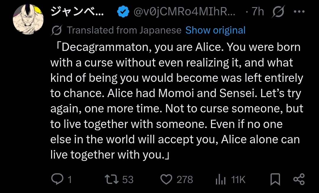 I can't tell if Japs are having a laugh doing Jujutsu Kaisen memes or if they genuinely think they can redeem Decagrammaton.But I genuinely wouldn't mind seeing that happen honestly.
