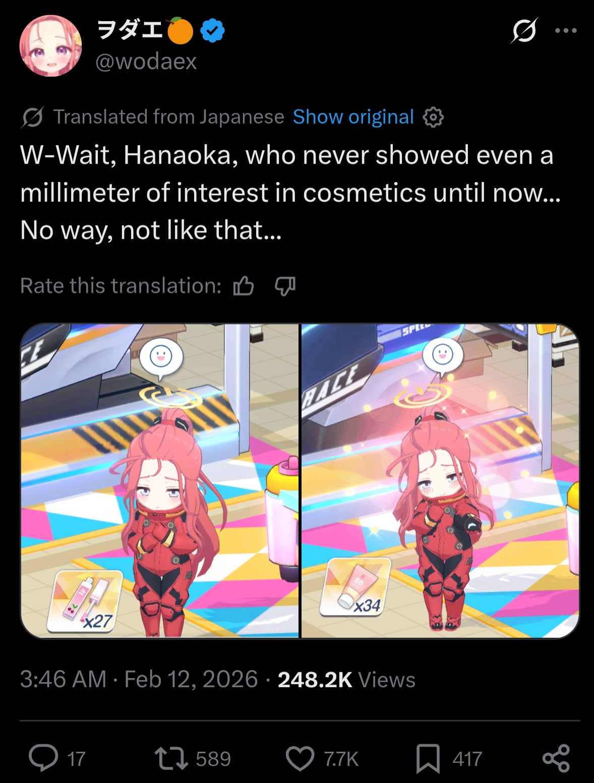 >>557265143Nope. Those cosmetics are going to REAL women, like Shun and Mine.