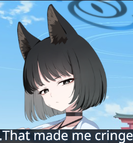 >>557264083>a God-likeNah, it's just a machine. You could say that the threat in both cases is planetary level, but that's because the civilization of Kivotos does not extend off-world yet.Chroma was (or I should say "is", since it's not like it was destroyed) a Lovecraftian eldritch abomination that irreversibly warps everything it comes into contact with. Or hell, even as much as looks at it in a dream, in case of Seia. It's just that we never confronted it directly, we only fought its proxies. And it wasn't even directing the invasion or anything. It simply "touched" a student, and that student was taken advantage of by the Nameless Priests.