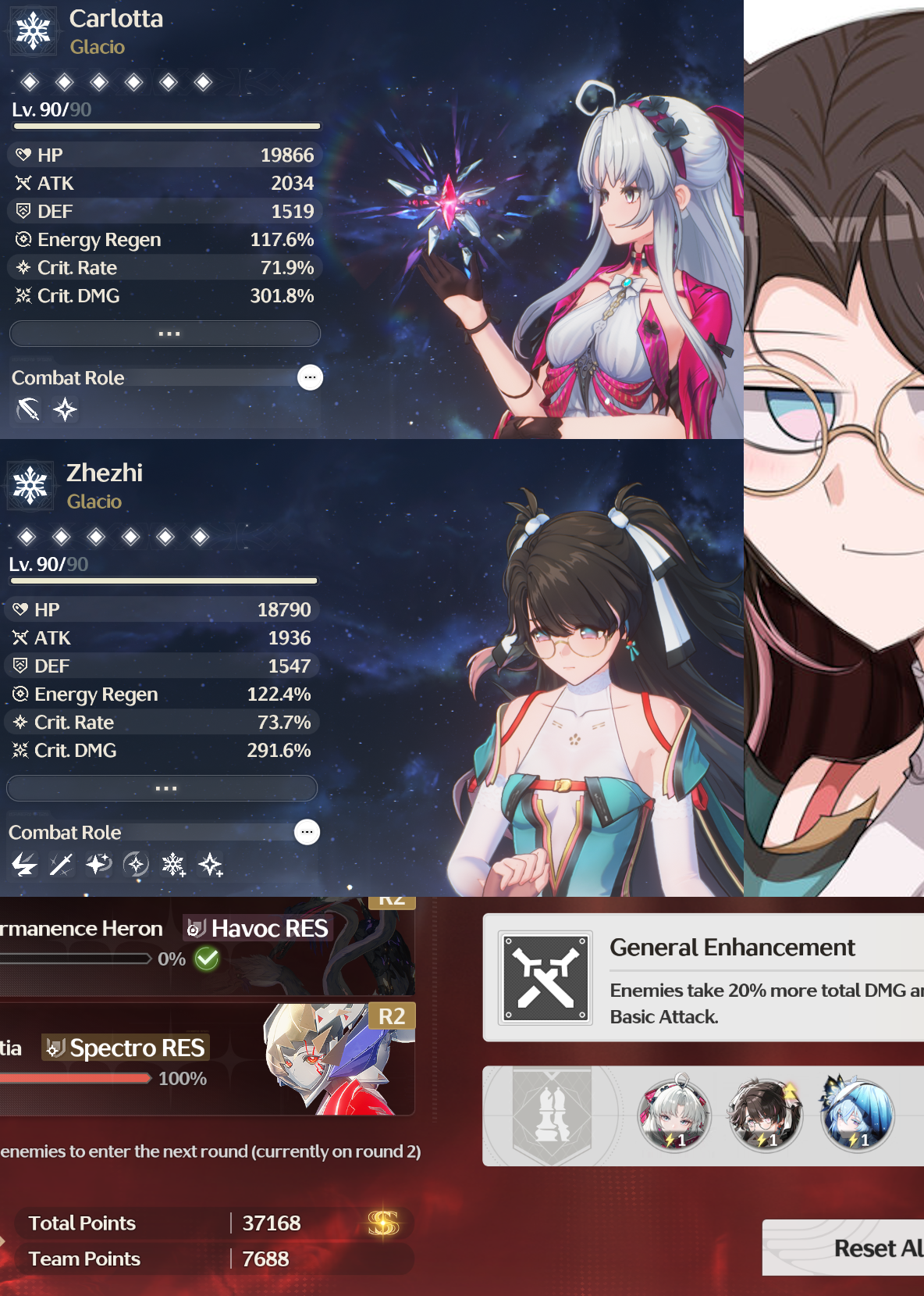 That new endgame sucks. Can't even get 5k score with Carlotta unless I throw Lynae on the team. All 1.0 S0 characters are is the dumpster.It's less than 1 pull for the 3 teams thing so whatever.