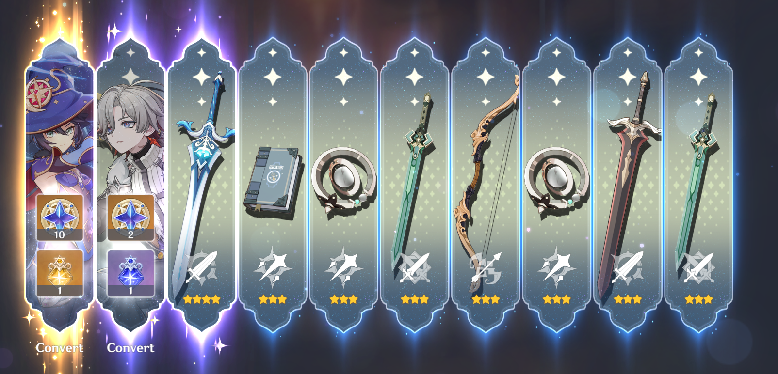 >Current weapon banner: Lightbearing Moonshard (Sword), Tome of the Eternal Flow (Catalyst)