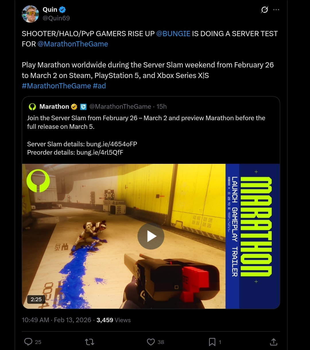 Here is your sponsored #Marathon streamer - https://streamable.com/2lp0fp