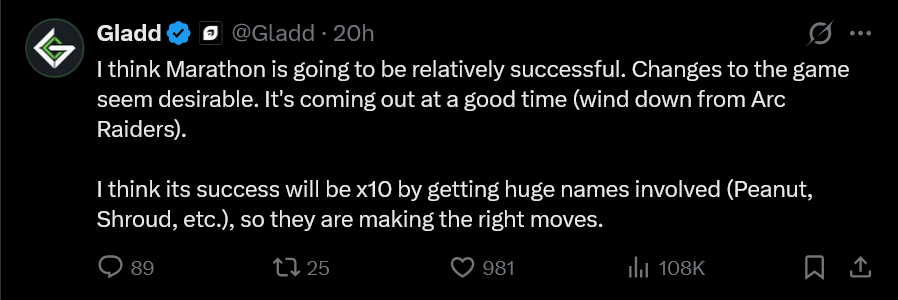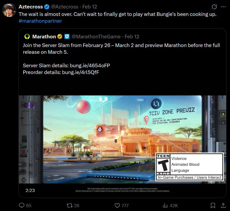 Apparently people came up with a new term yesterday and are calling Marathon "layoffslop" now, so that's what I'm gonna call it going forward