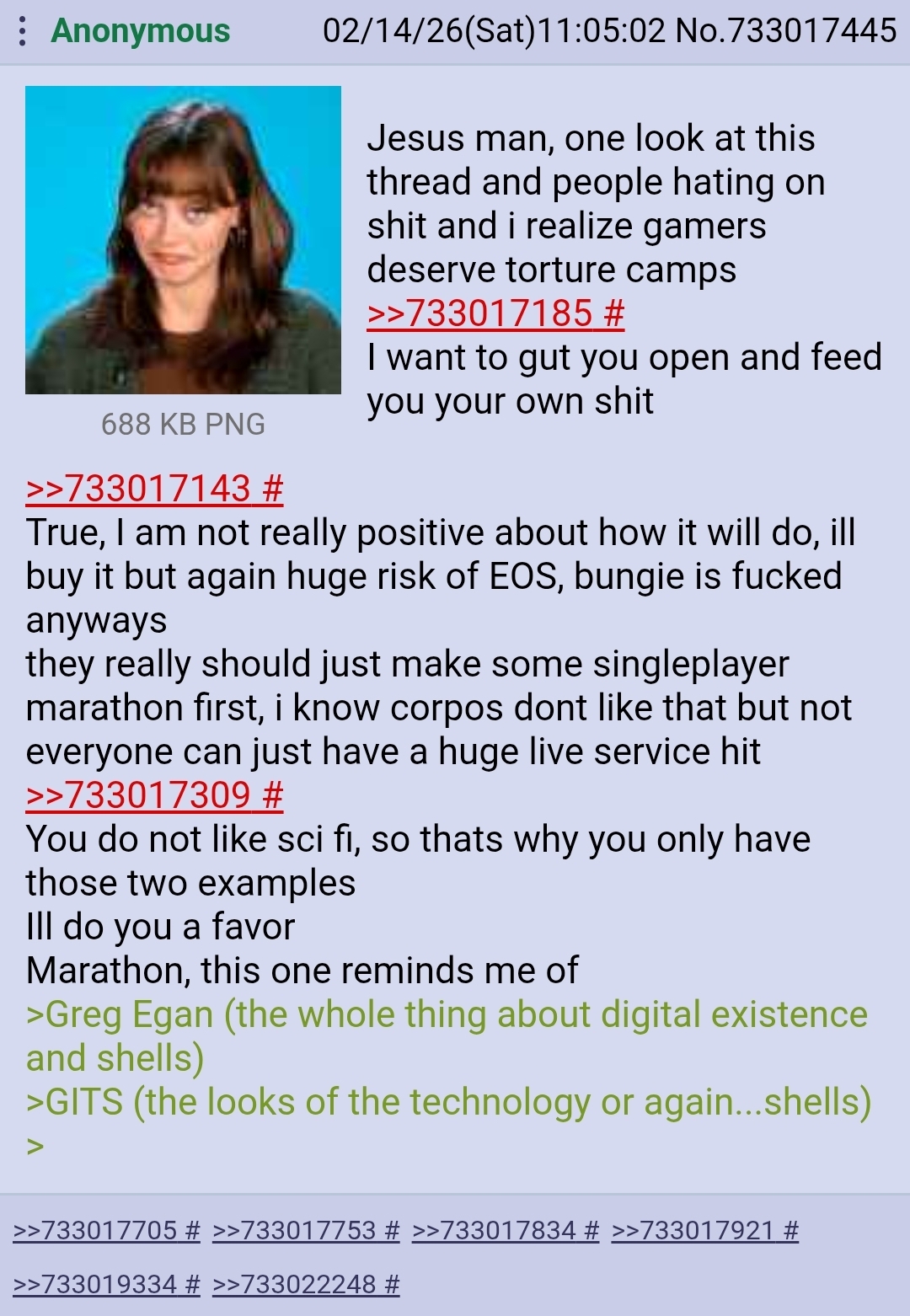 >Things are so dire we are reaching skong derangement levels of "t-theres a secret neomunda expansion being worked on all about braytech predictive ai and maya sundaresh!"Niggas can't even finish a free update and want to blank you rather than admit the game is going into maintenance mode if Marathon flops and people think there are extra expansions being made?