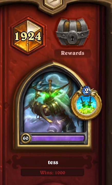 don't remeber if there's a special animation for getting 1000 wins but if there is, the game skipped it because I ended the game using a hero card from maestra lolonly 9 classes to go now
