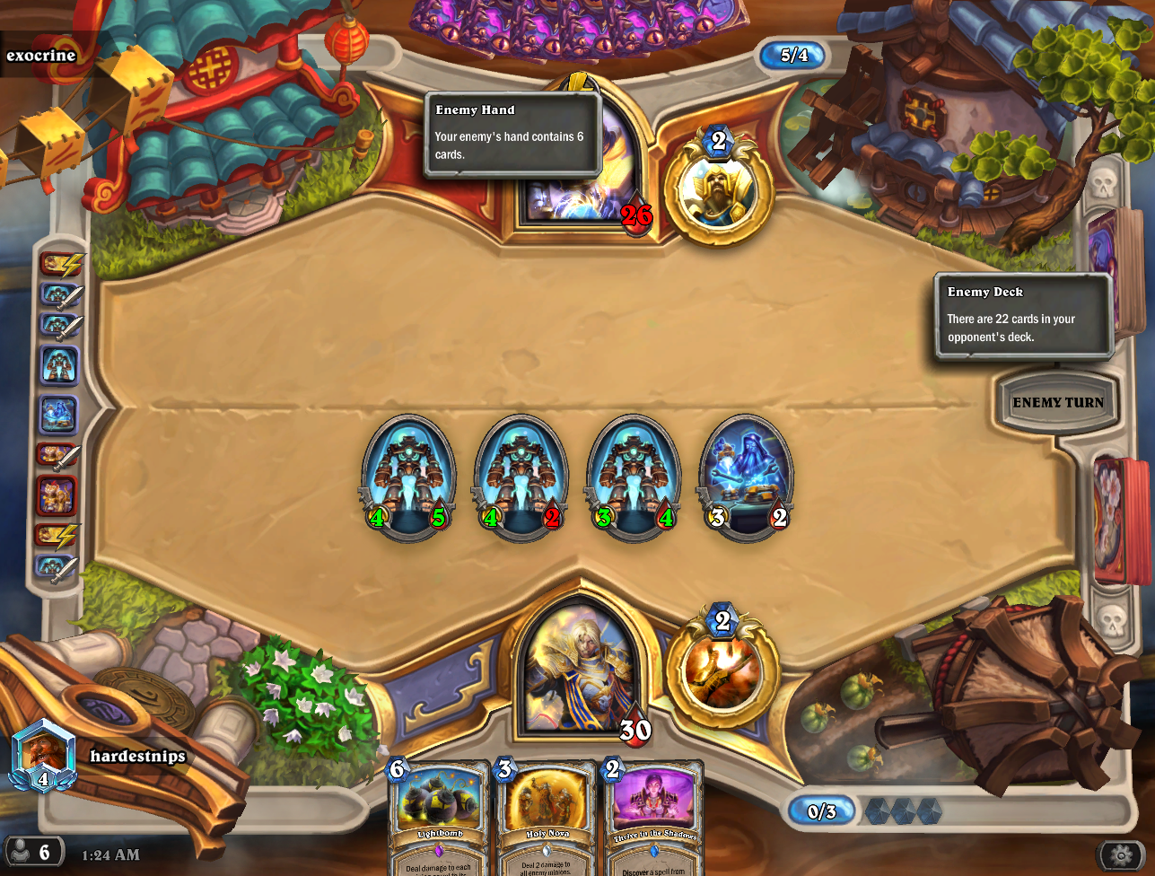 >>557767370lolthat's funny. dogshit, but funny. not even a demon beast to grab off the no minion location or "cheat" out with tichondrius.thank you cora I will choose to play a 9 mana 9/15 taunt instead of just winning the game with azshara :)