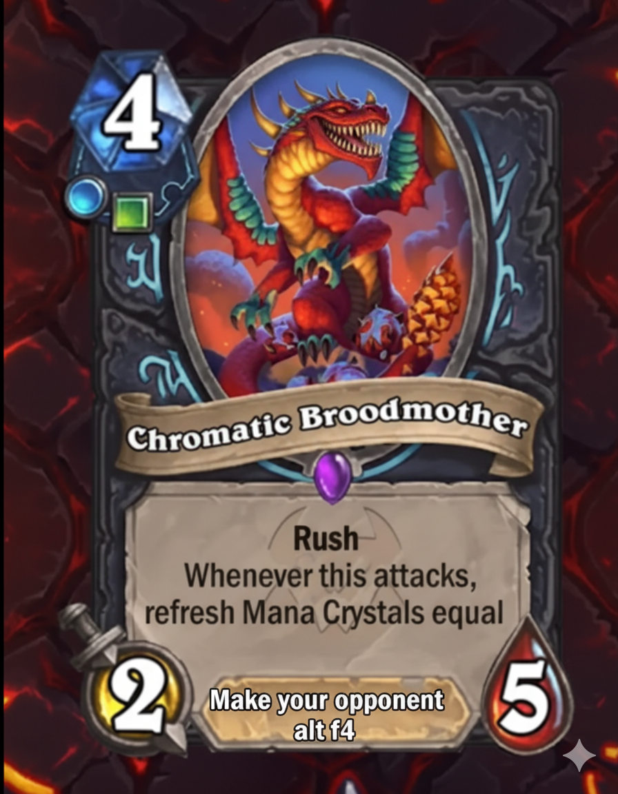 >>557304693dont forget the deathwing heropower thats literally just give your hero 5 attack this turn. very cool and balanced. kill yourself cora