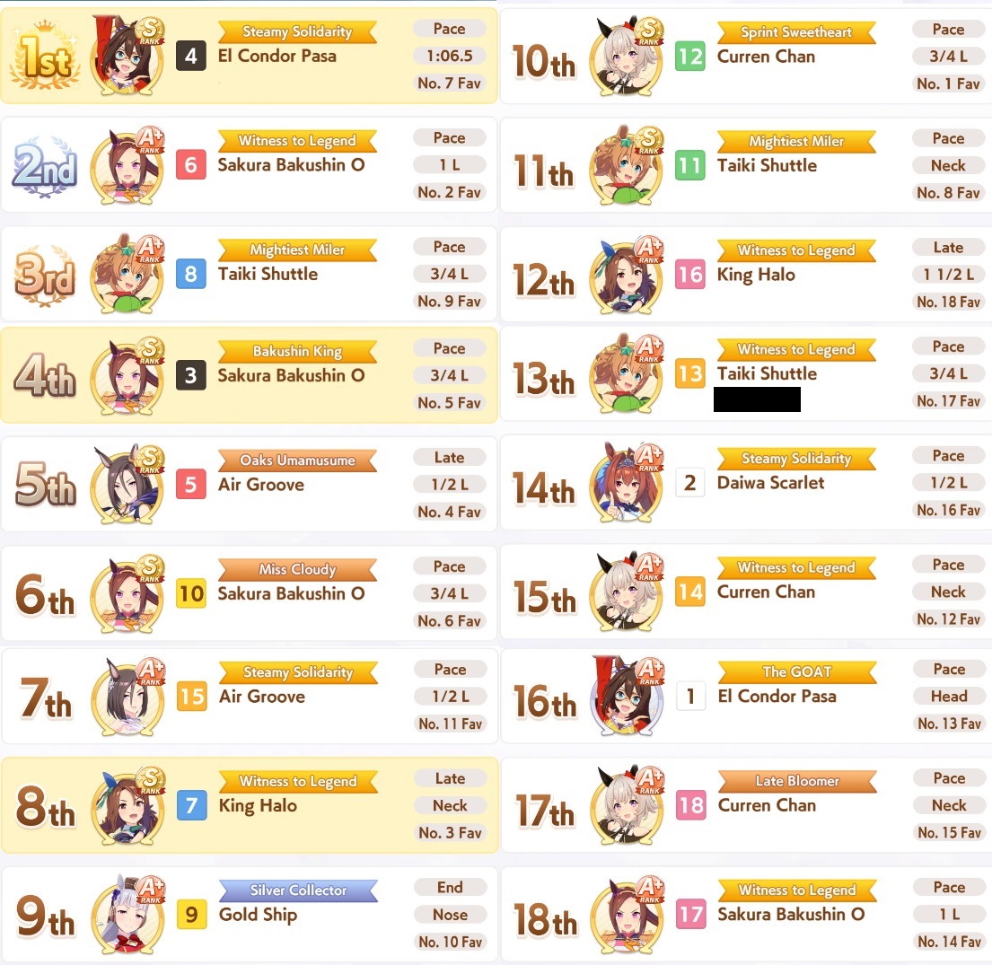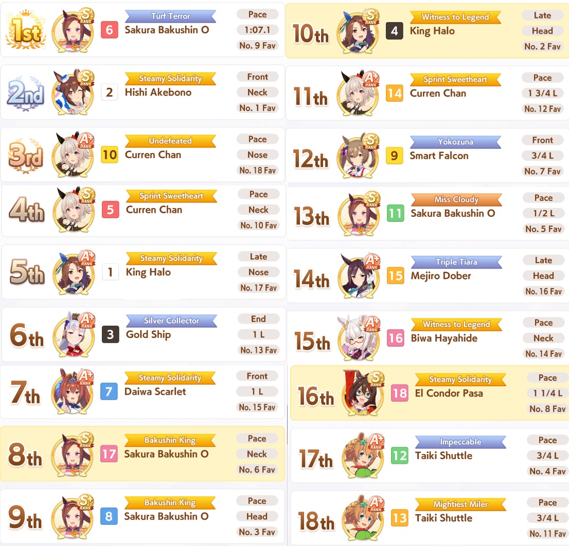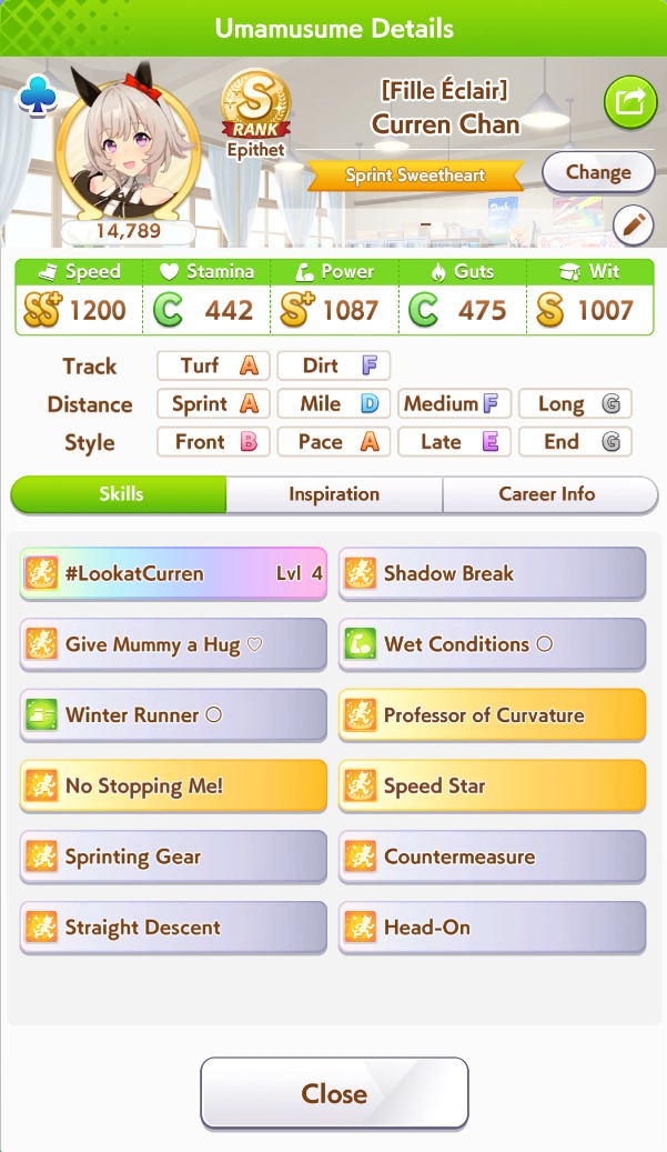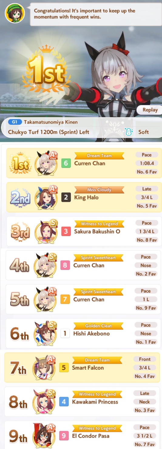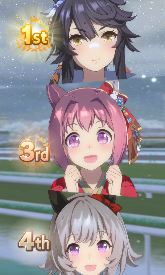 Yeah Sprints being luck clusterfucks is definitely true, the game always fucks me. My 15700 Bakushin with an extra amount of stamina and guts from a high roll and a total of 10 skills can't break 4th versus team trial shitters.