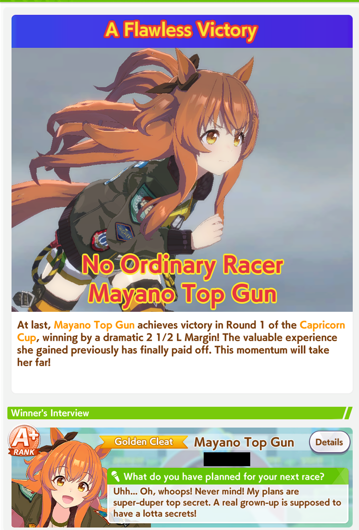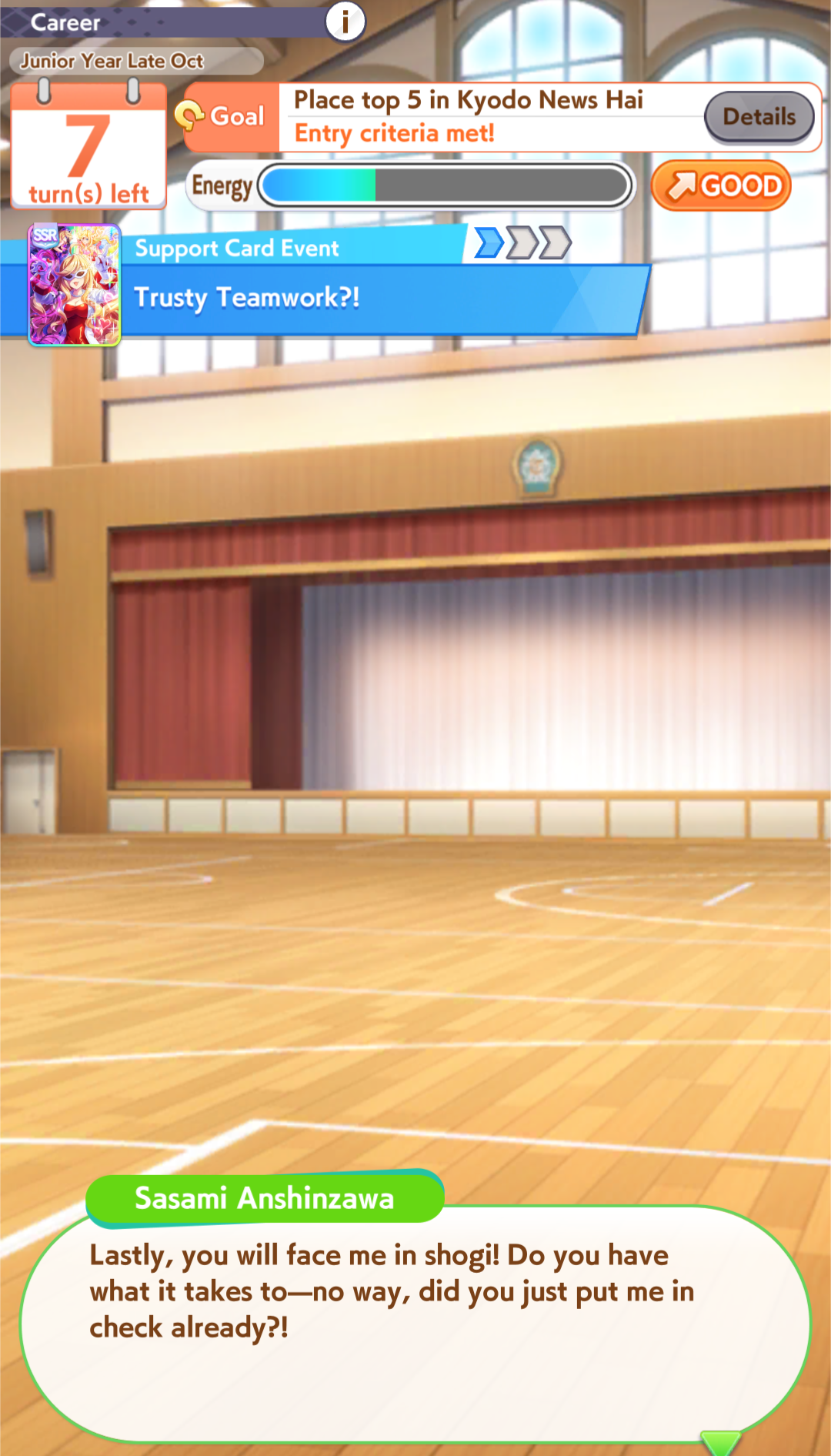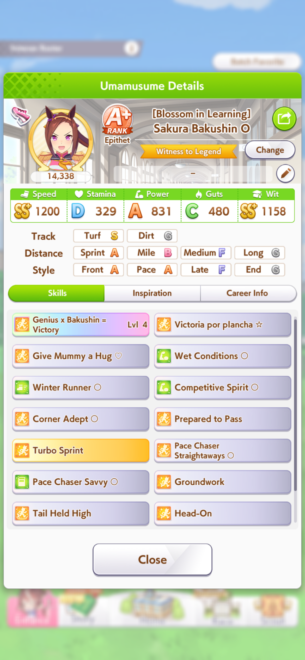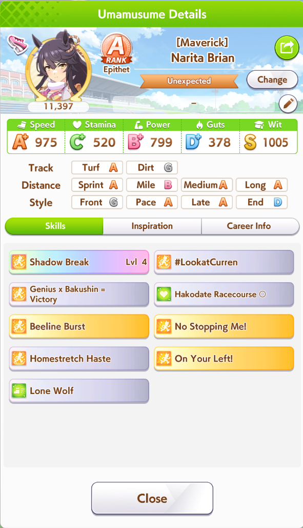 Yeah Sprints being luck clusterfucks is definitely true, the game always fucks me. My 15700 Bakushin with an extra amount of stamina and guts from a high roll and a total of 10 skills can't break 4th versus team trial shitters.