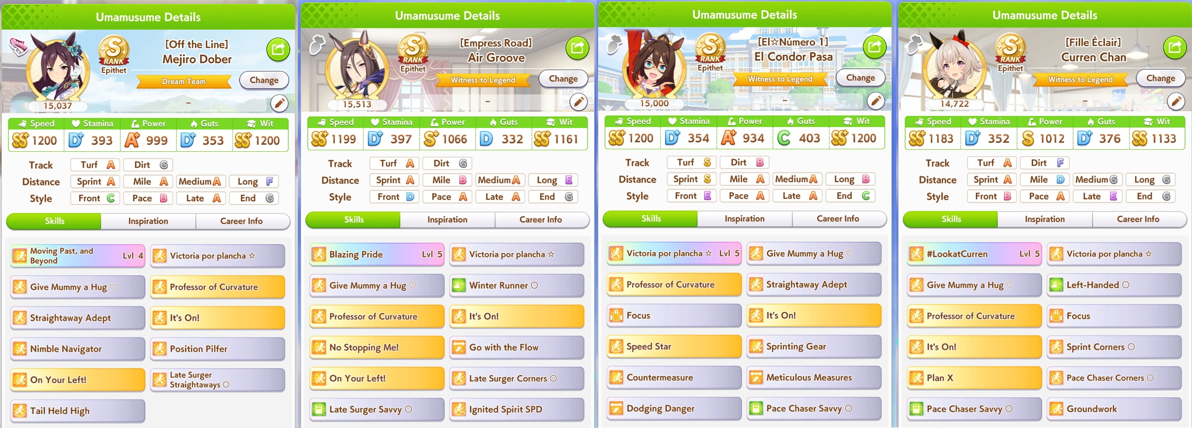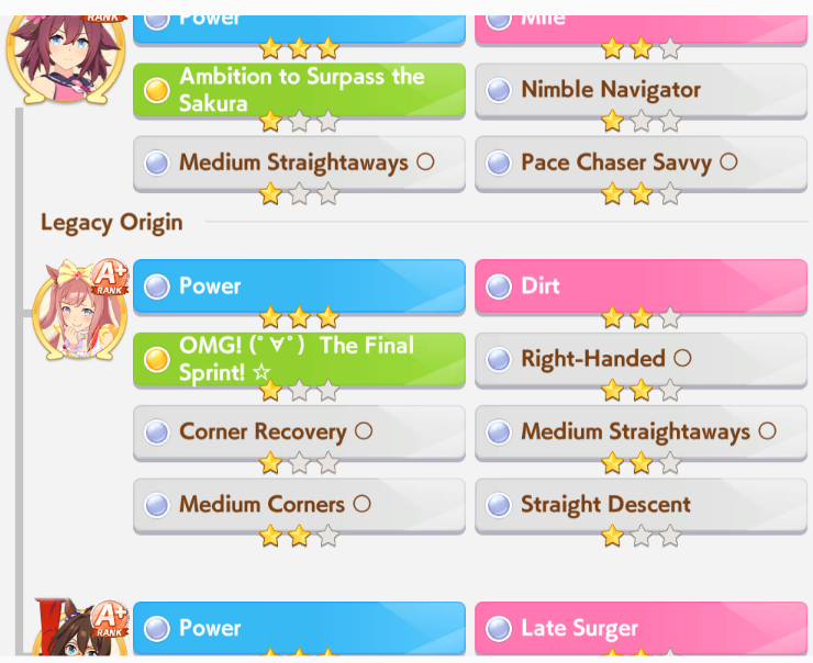 >have vastly superior S umas with 1200 speed, wit, and power with every good sprint skill imaginable