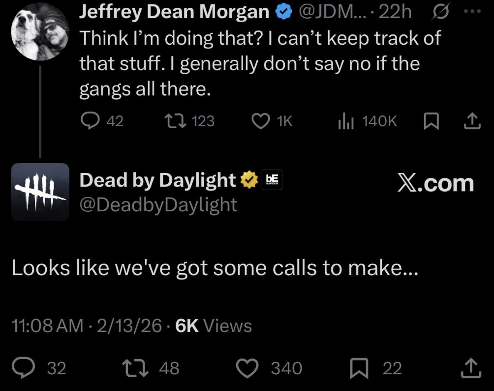>Someone randomly tweets the guy who plays Negan asking him if he's doing DBD>He just says "uh I guess I don't know">DBD replies to itwew