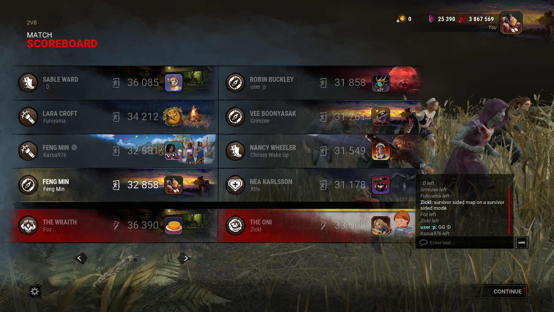 >>557315834ever heard of a surrender vote ? You call a surrender vote and if everyone on your team agrees the game ends and killer gets bonus BP in settlement or whatever.