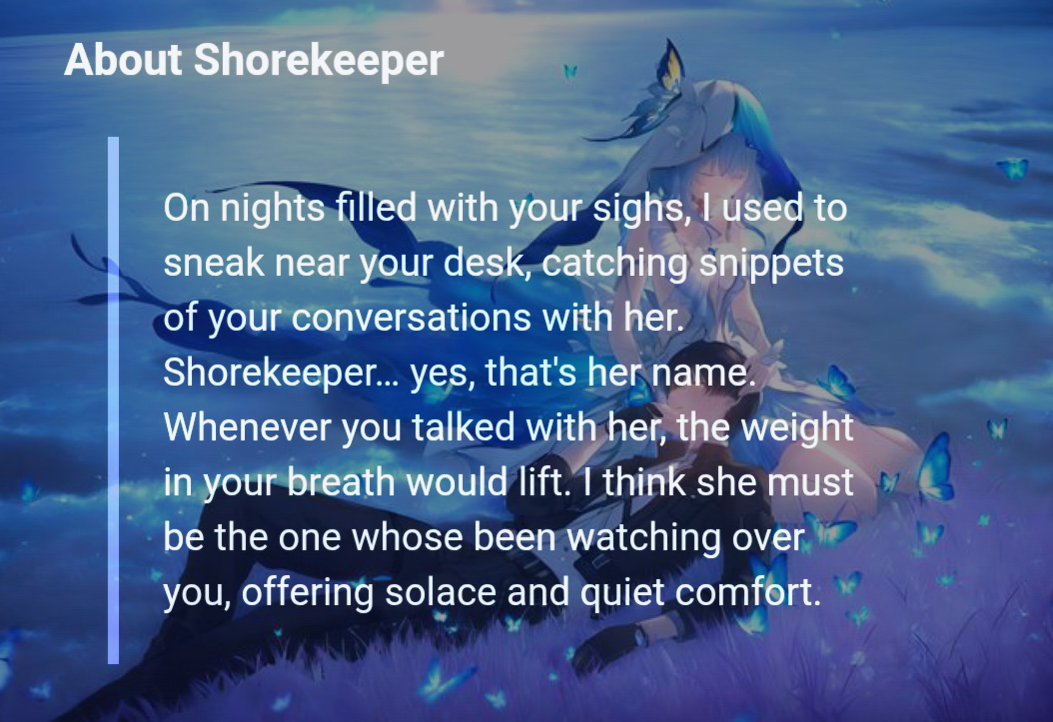 I don't know why, but Aemeath's line where she hopes that Rover continues to feel sorrow and joy in their long long life makes me tear up more than anything else