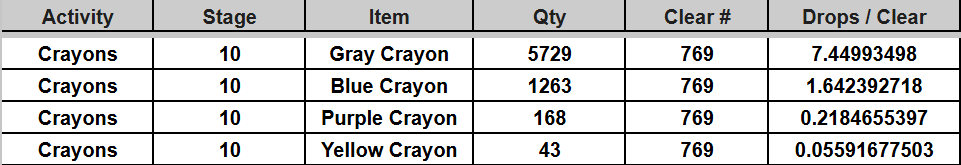 i've decided to start keeping a spreadsheet on the drop rates for crayons since i couldn't find one online