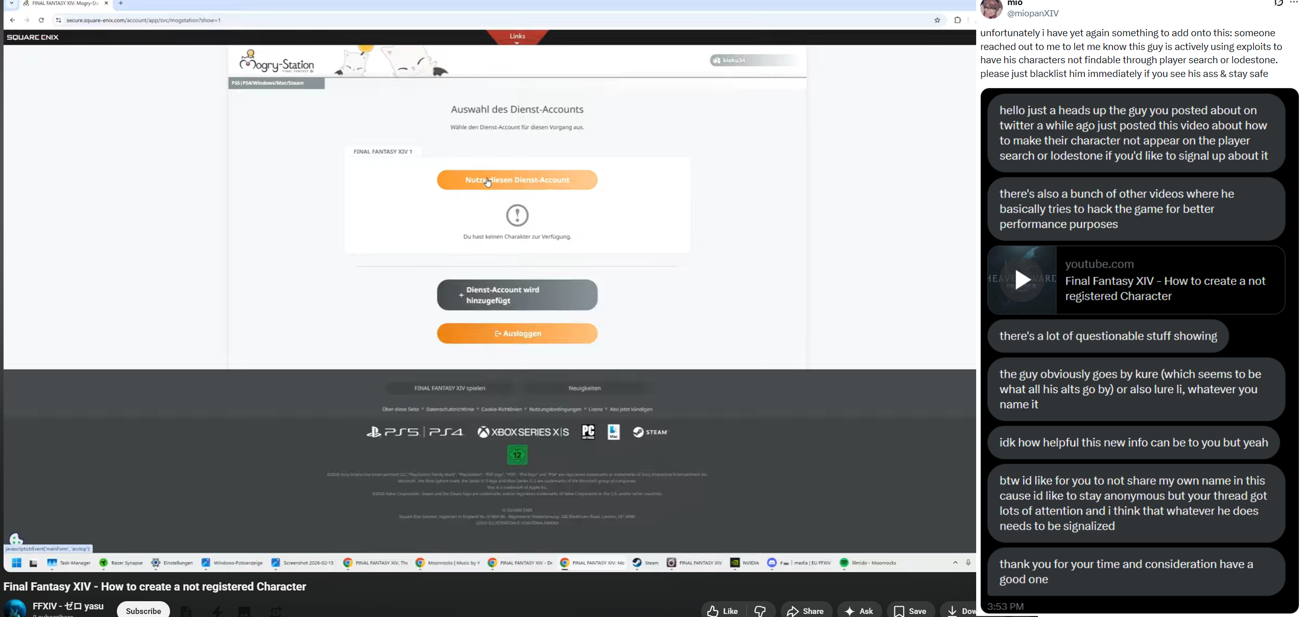 [UNUSUAL]Perhaps you saw posts on X regarding a strange catboy sexpest who would approach people on a low-level sprout and ask them to put on a plain shirt. Once this phenomenon became public knowledge, many people came forward with stories of encountering this player. It seems he gets sexual satisfaction from 'tricking' people into wearing modded clothes on his screen. Today the story enters a new and unusual chapter, as it has been revealed that the sexpest is EUROPEAN and has a method for avoiding all player searches and lodestone queries by making his characters unregistered on the mogstation? HOW DOES HE DO IT? Limsa stacies will not be safe until this Euroid is off the streets! We are through with creepy Europeans on NA servers!