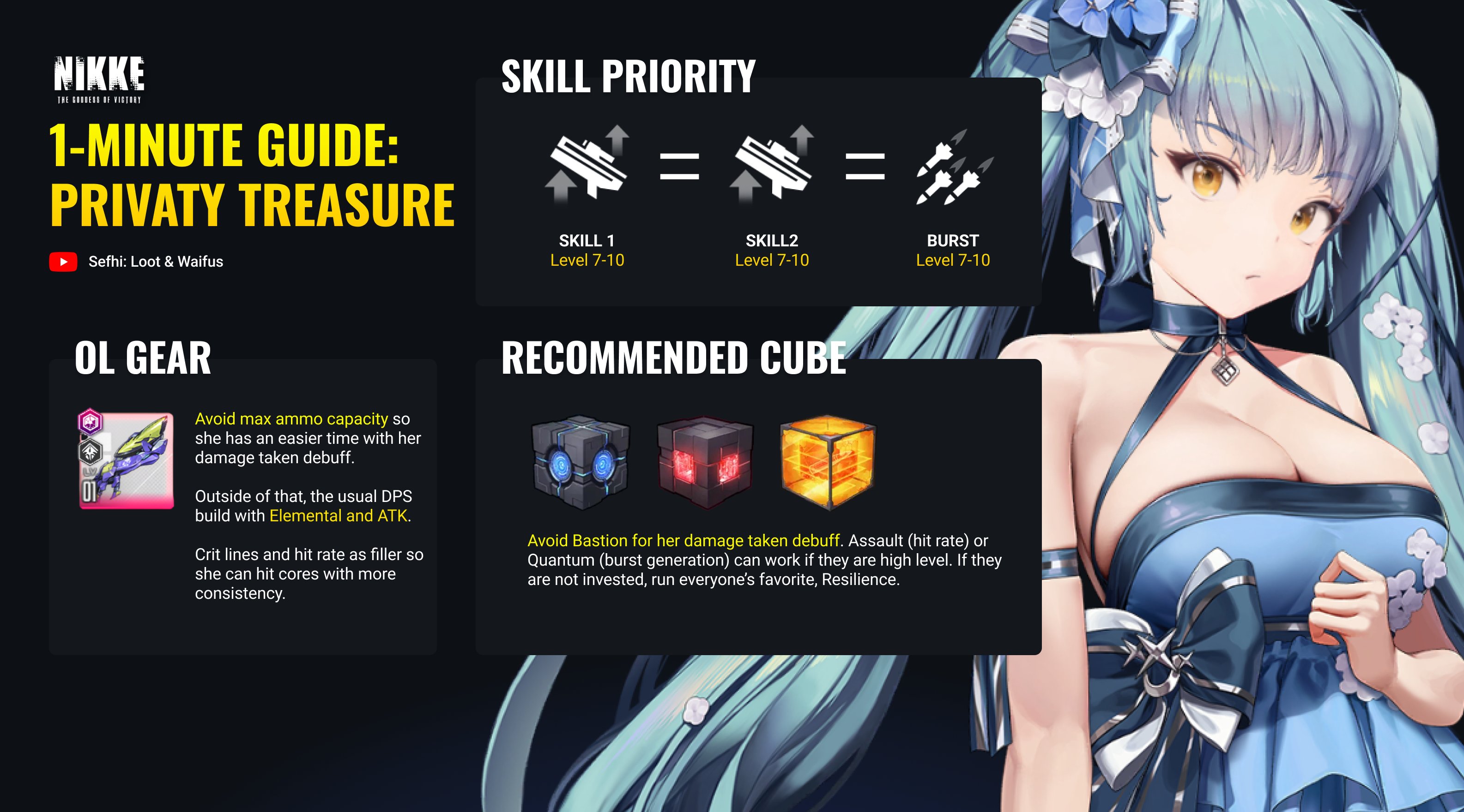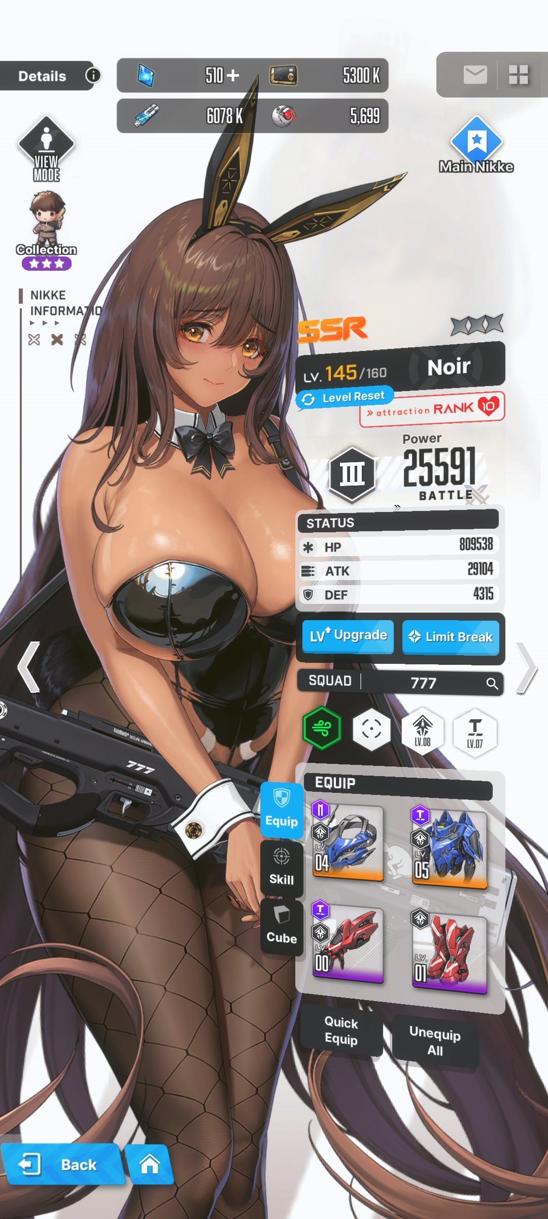 Alright I'll stop spamming now. Thank you for joining me on this journey. I can't believe I pulled her so close to valentine's day. I suppose it is already valentine's day on the other side of the world. What a great ending. Anyway here's what I have on her. I've been saving everything I have to make her as strong as possible when I finally pulled her. She's easily my strongest Nikke now and it's not even close. I will use her to finish the remanded of the story.