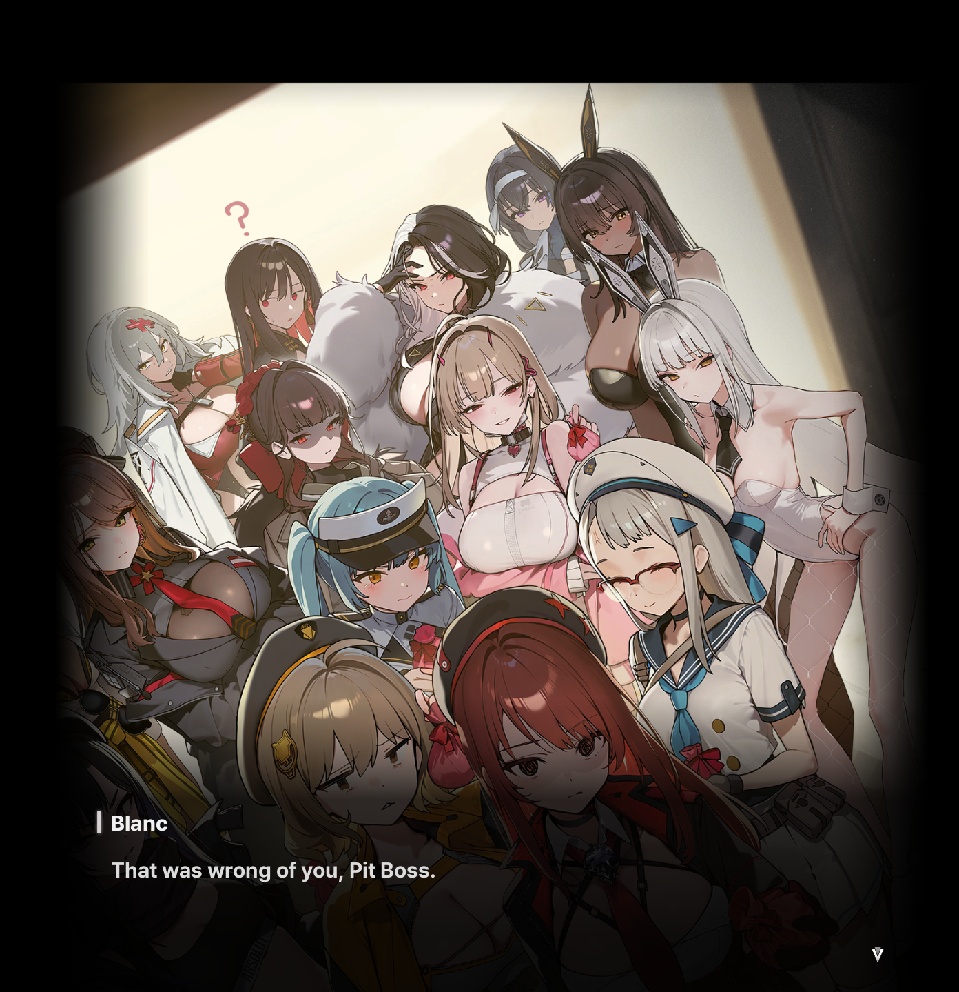 >helm's treasure>mission starts, you're already "a couple" and referred to this directly>(You) wake up after she was presumed to be sleeping with you and using your shower>helm's struggle in the mission to stop being so stern and be a better gf for (You)>finds a new navigation tool (her heart) instead of a compass>kisses (You) tells her about all the first times she can have with (You)>ends up having literal sex with (You) on the surface>moran's treasure, same general romantic interest plotline>mission starts, she's getting ready for a date with (You)>planning out all the ways she's going to try get close to you in the dark movie theater>breaks her hairpin because she doesn't know how to put it on and (You) help her fix it instead of going to the movie with her>glue it together and watch a movie in your room instead>get comfy cuddling and a small kiss while the movie plays>after the glue sets (You) put the hairpin in for her because she doesn't know and you look at the back of her neck and compliment her>no sexEven in one of the more intimate scenes it still doesn't even come close to old nikke. Sex used to be part of bond conversations. Events used to have nikkes abduct you to a cave and fuck you. Why is this game so pussified now? After the pre-pussified version is what made it popular in the first place??