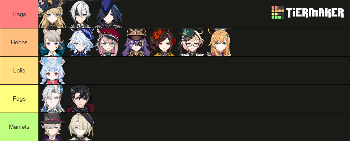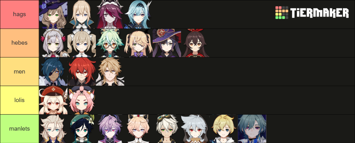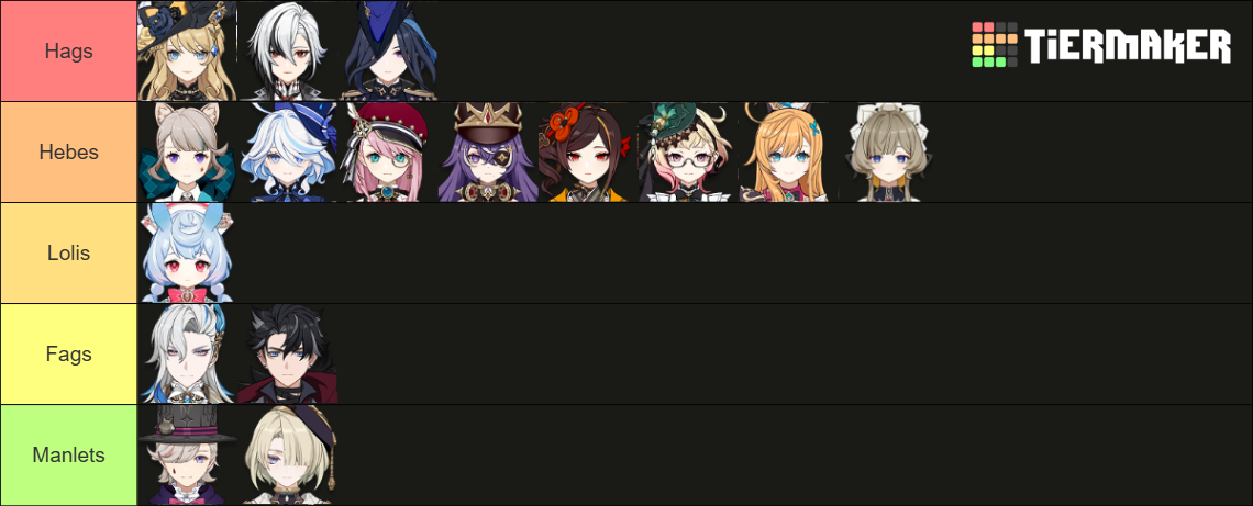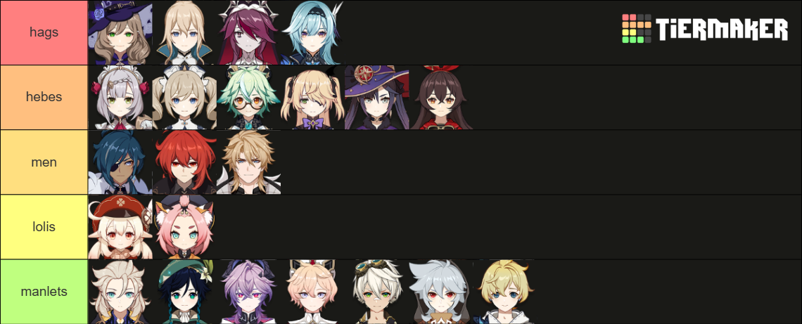 nations for hetero men:>Fountaine>Natlan>Inazuma>Liyuenations for troons, faggots and dykes:>Mondstadt>Nod-krai>Sumeru