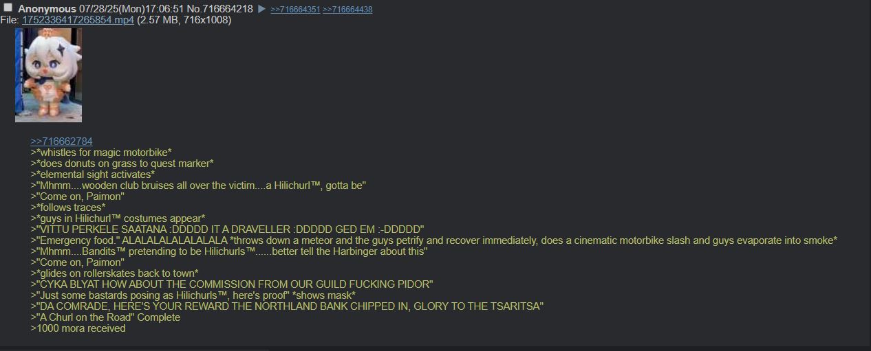 >>557337271>most of her power went back to teyvat in form of kuuvahkiIt's important to note that she didn't lose this power, she just willingly let it reside over Nod-Krai. If she ever needed that power back she can just take it back or freely manipulate it if within Nod-Krai.