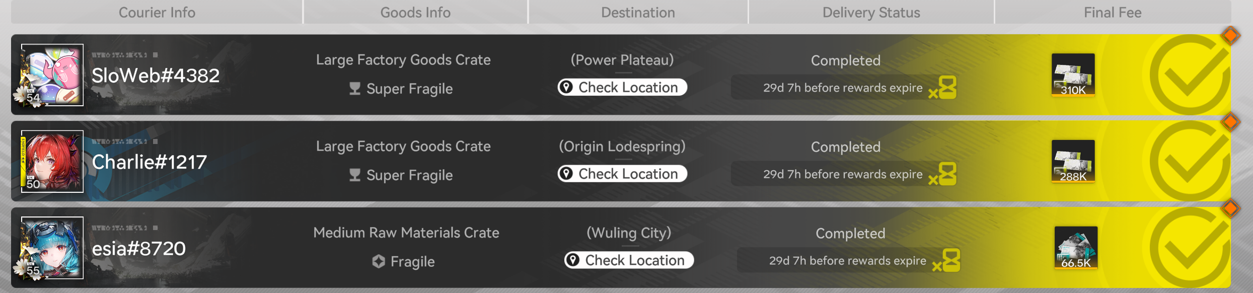 Can someone explain why my Wulinger deliveries are 89k but the random ones on the board are 66k or 73k?