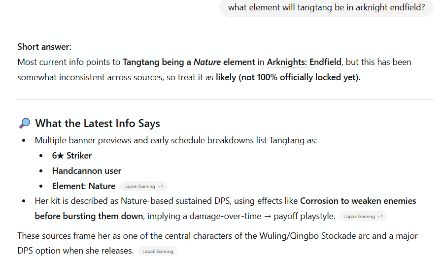 >>557356806>Tangtang doesn't seem to have anything tying her to a particular element.Ice, I think. Wuling's entire thing is liquid mechanics, and Tangtang is the anti-Wuling. So turning liquid into solid fits her theming best, and that process describes Ice.