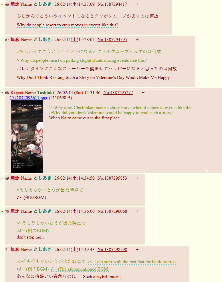 >>557368813I liked the event but making your Valentines event a feel-bad event that is played up for laughs is kinda trolling