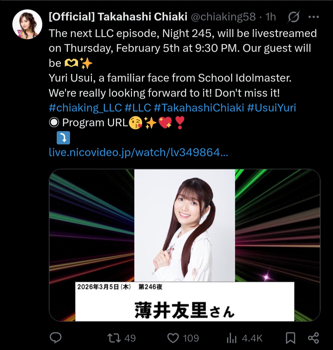 That's all nice and well from Mingosu, a colleague perhaps. But Chihaya herself looked to have done a post live interview toohttps://x.com/gamespark/status/2022530767121977658?s=20